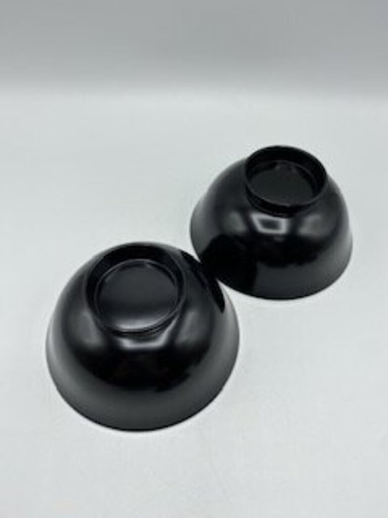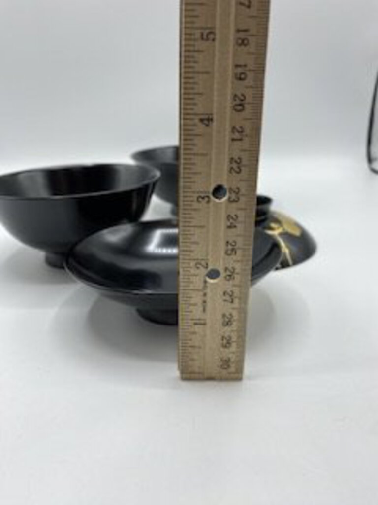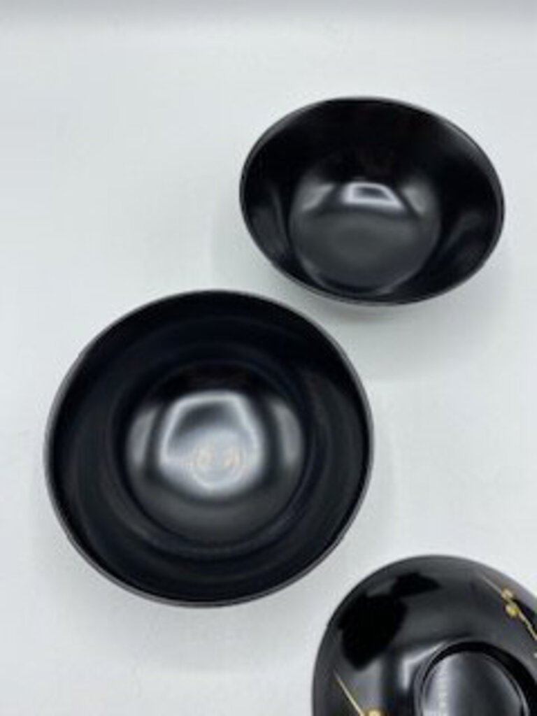 Vintage Japanese Black & Gold Lacquer Rice/Soup Bowls w/Lids Set of 2 /ro