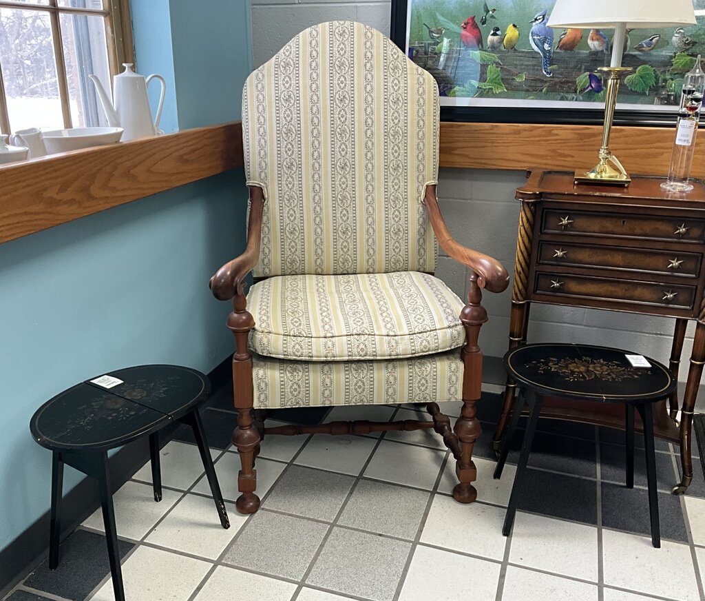 This table is in good condition and has no damage! Such a cute table with gold floral patterns on the top. It folds up perfectly fine and there are two of these small side tables, just sold individually.