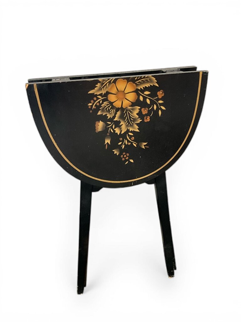 Vintage L. Hitchcock Stenciled Black and Gold Small Oval Folding Table