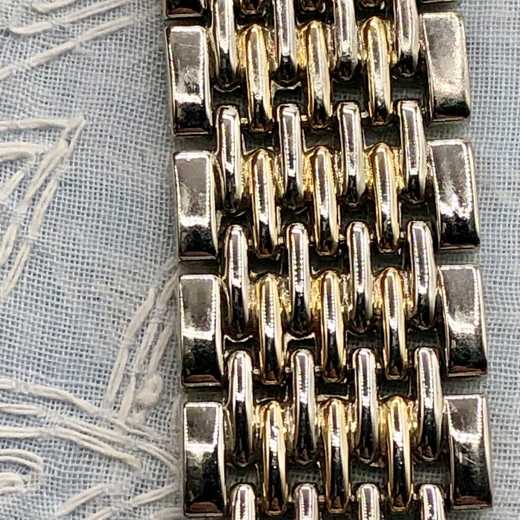 Band measures 7 1/2” around and has removable links to downsize for that perfect fit.