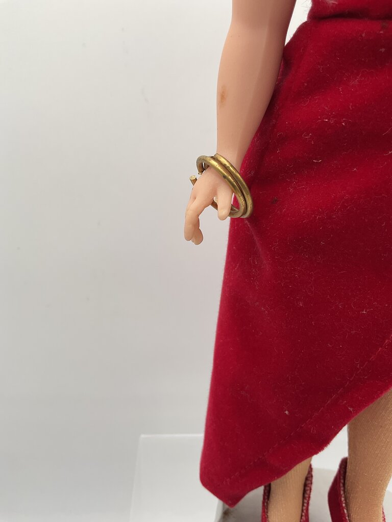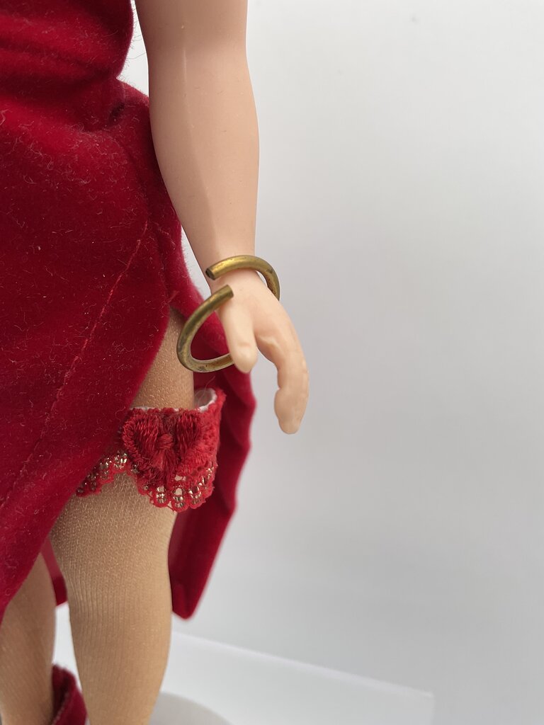 This 9 1/2” tall doll was designed by Madame Alexander and produced as part of their Hollywood Collection series. It features Betty Boop in a more realistic style. In her iconic red dress, gold accessories, and red heels, this doll is perfect for any collector of Betty Boop items or fans of older animation. Doll measures 9 1/2” tall and weighs 5.2 ounces. Doll is in great vintage condition. Head and arms feel slightly loose but that could be how this was designed, everything stays still just fine when not tinkered with. Please carefully review all photos for overall condition. Estate item. Condition is pre owned. Ships USPS Ground Advantage Mail.