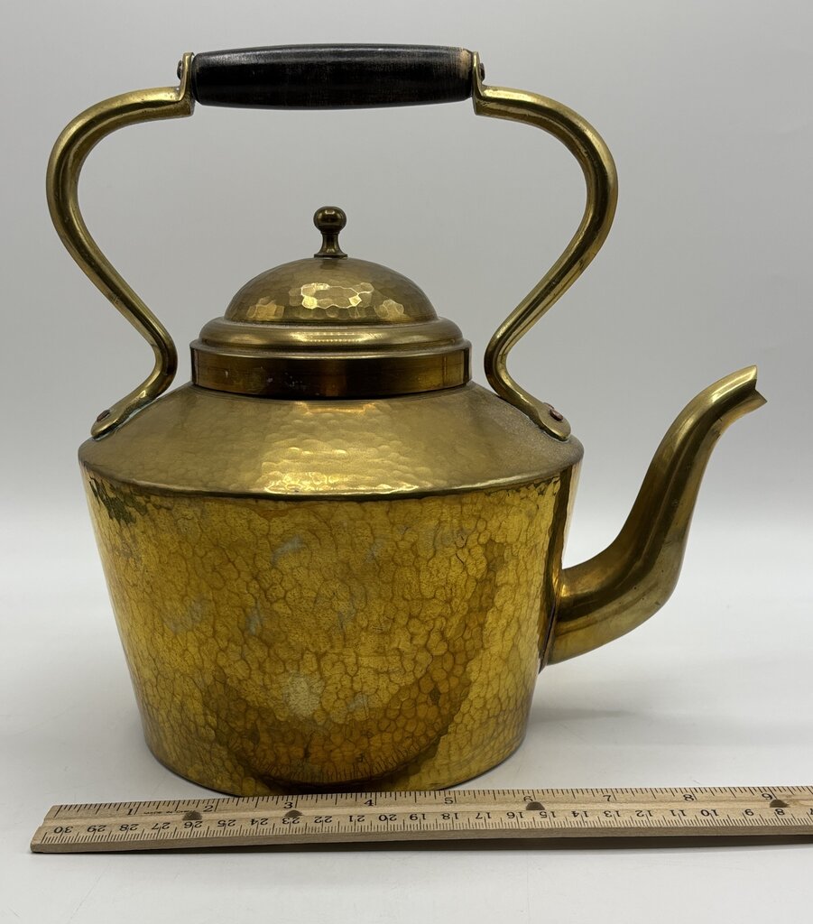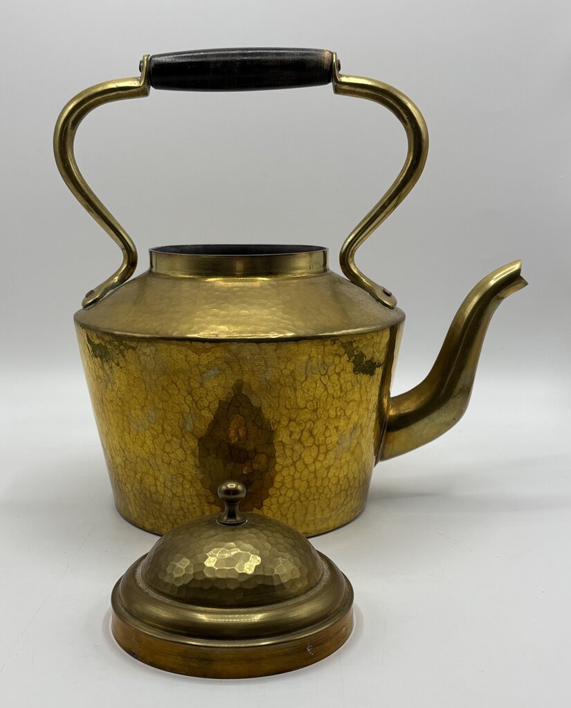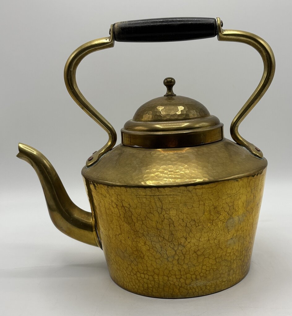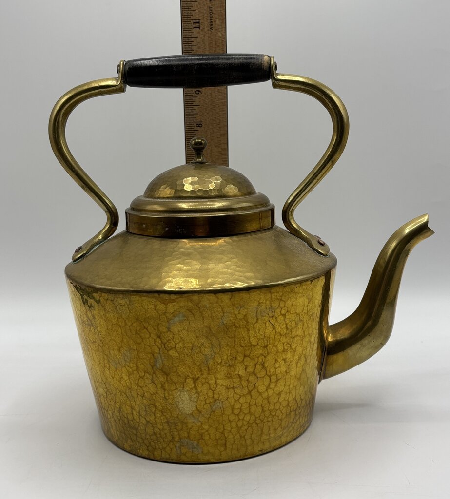 Vintage Made in Italy Hammered Brass Teapot with Wood Handle /j