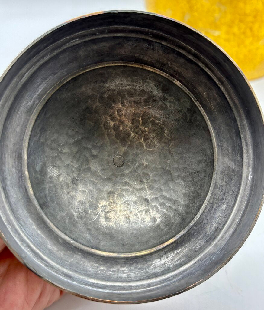 A beautifully crafted vintage brass teapot with a hammered texture and elegant handle, perfect for decor or practical use.