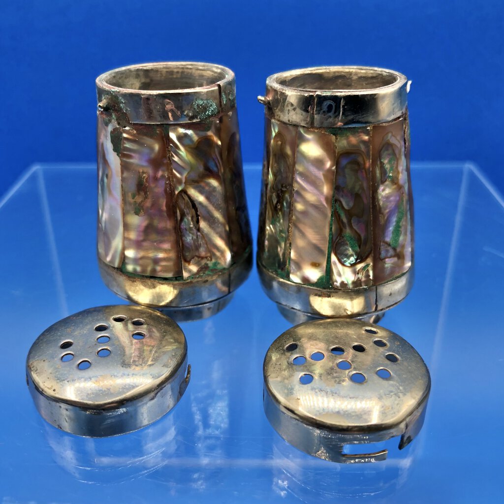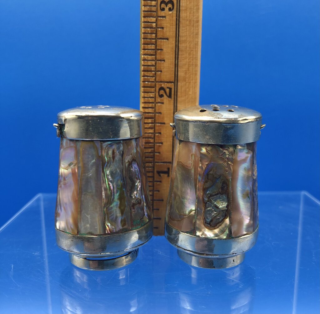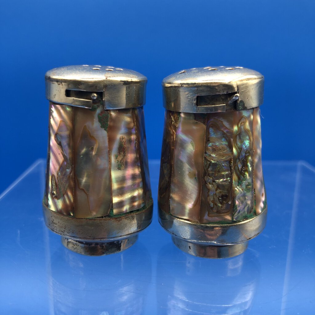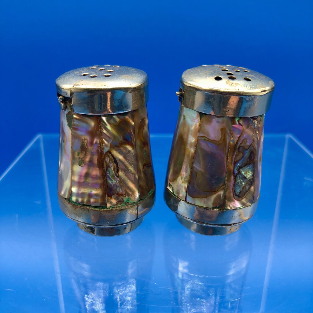 Vintage Mexico Abalone Shell Salt & Pepper Shaker Set /b