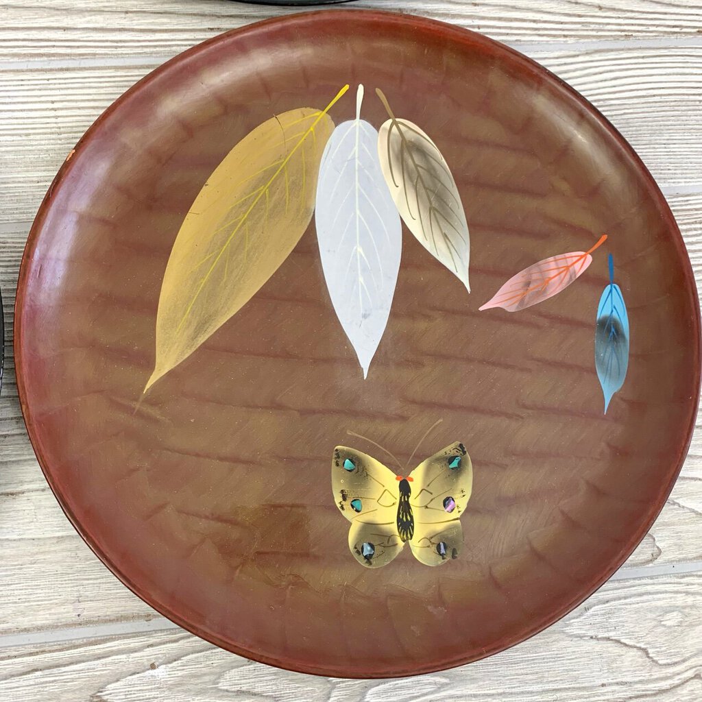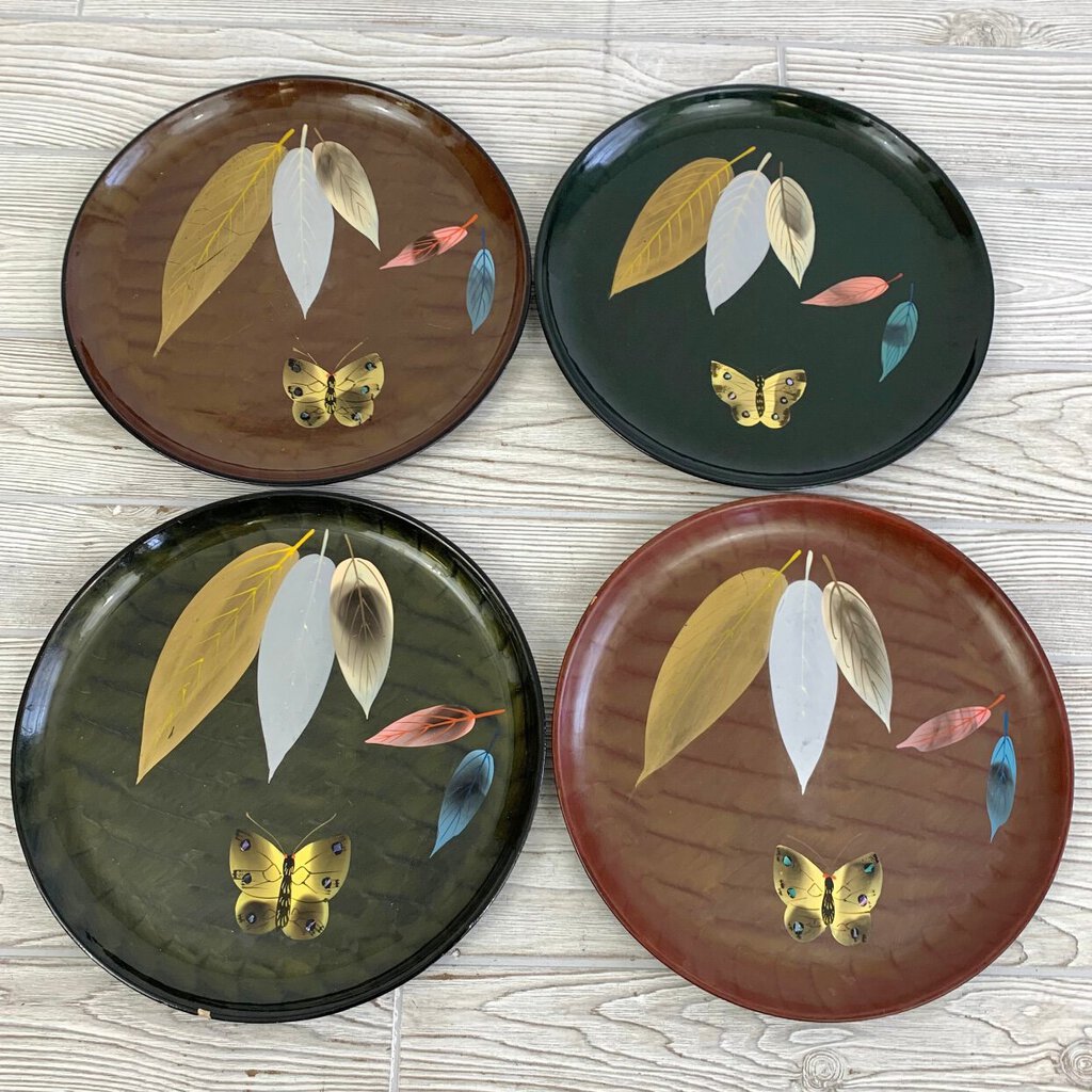 Vintage Mid-Century Enesco Lacquerware Leaf and Butterfly Plates/Trays Set/4, Made in Japan /cb