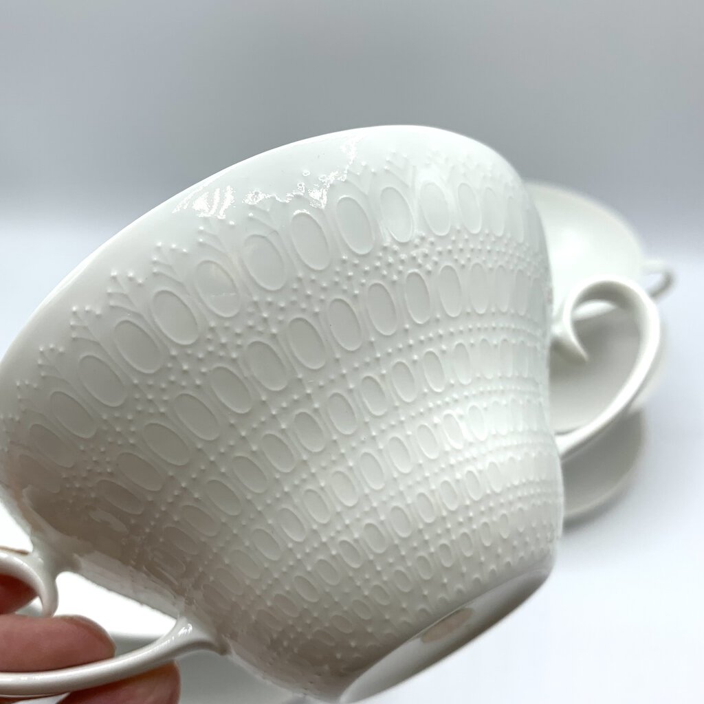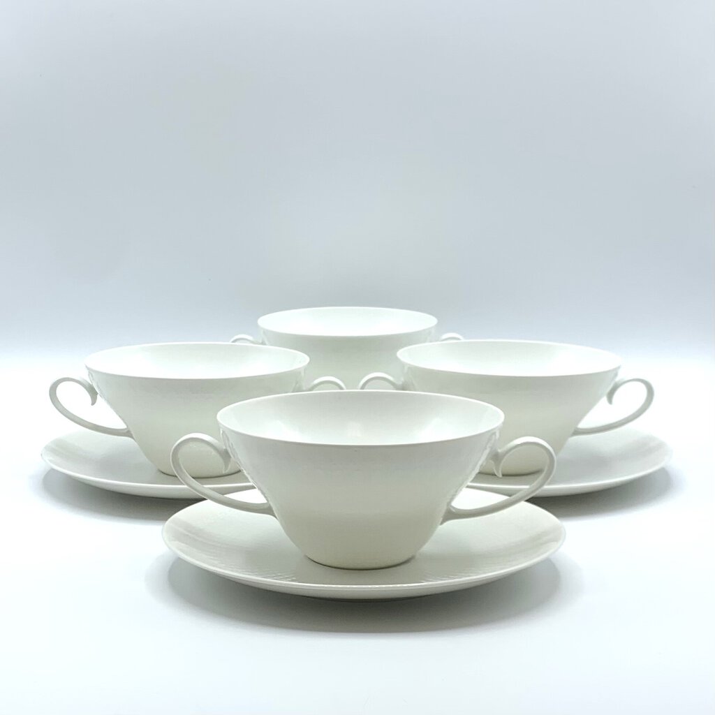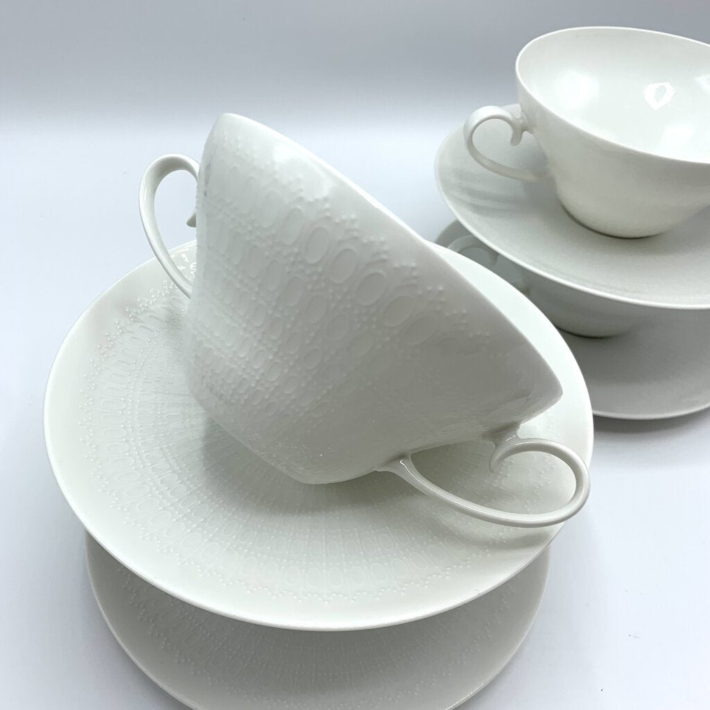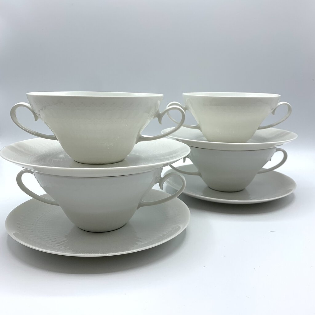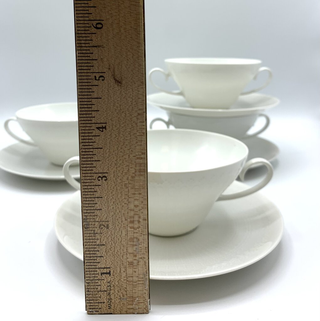 Vintage Mid-Century Bjorn Wiinblad Rosenthal “Romance White” Double Handled Soup Bowls with Underplates Set of 4 /hg