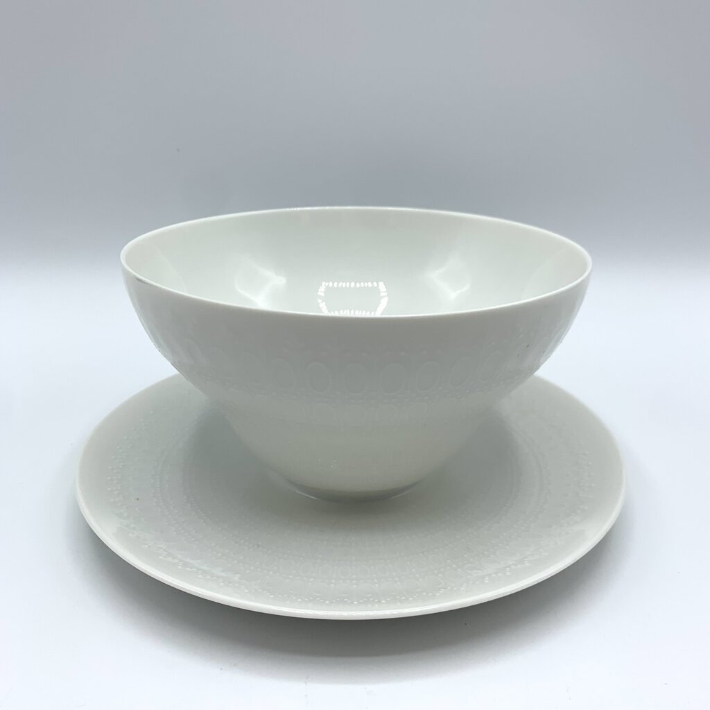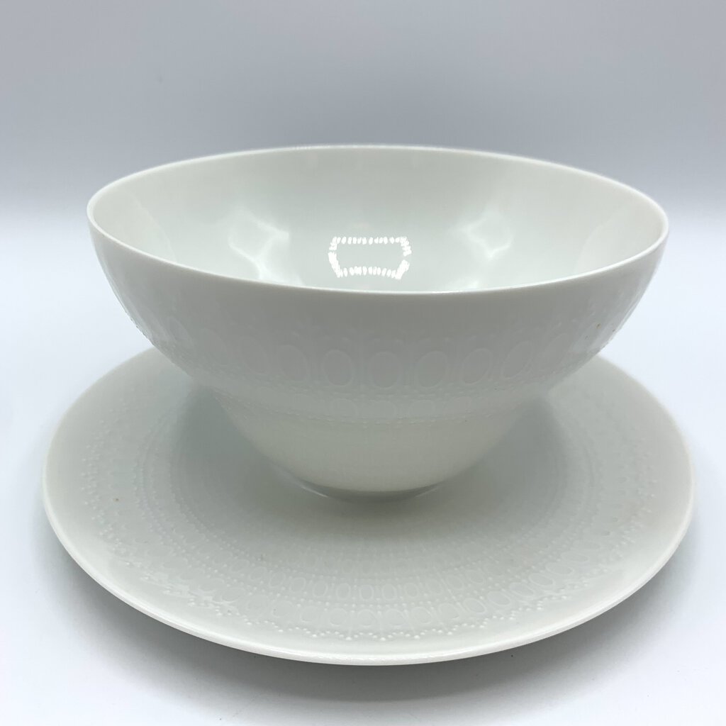 Vintage Mid-Century Bjorn Wiinblad Rosenthal “Romance White” Gravy Boat with Attached Underplate /hg