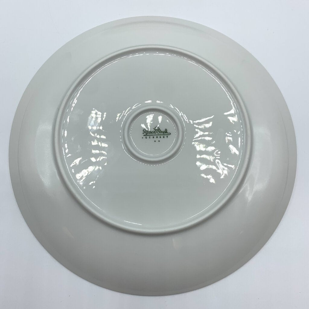 Intricate, yet subtle pattern to these mid-century salad plates made by Rosenthal of Germany. Designed by Danish artist Bjorn Wiinblad and crafted from porcelain, these plates are embossed with a unique pattern of ovals and dots. The design is crisp and elegant. Rosenthal produced the Romance pattern from 1961-2005, but based on the backstamps, the plates were made in the 1960s. They would be stunning on open kitchen shelving!