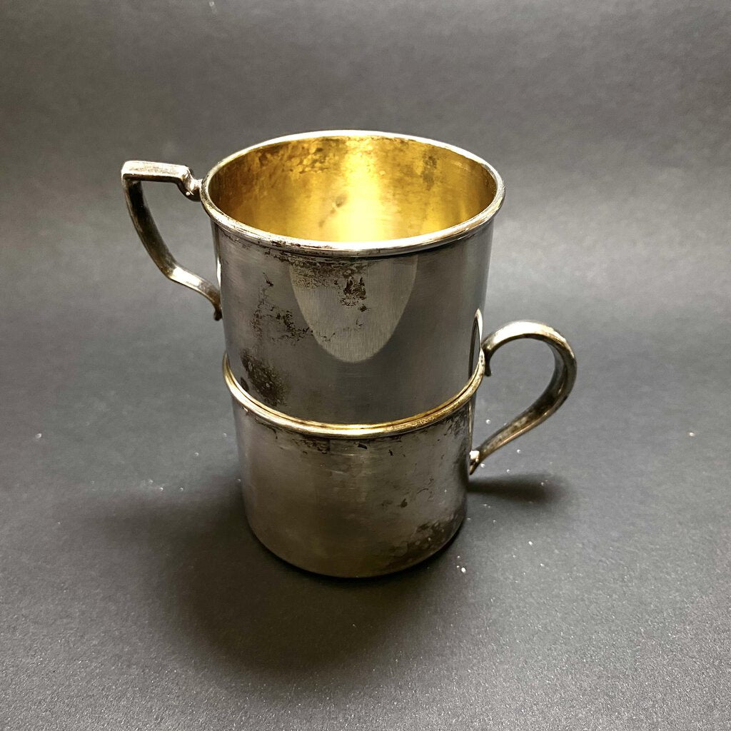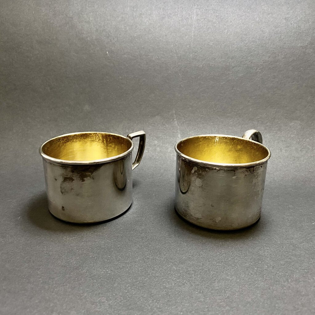 Vintage Pair of Oneida Silver Plated Small Mugs; Baby Cup /bh