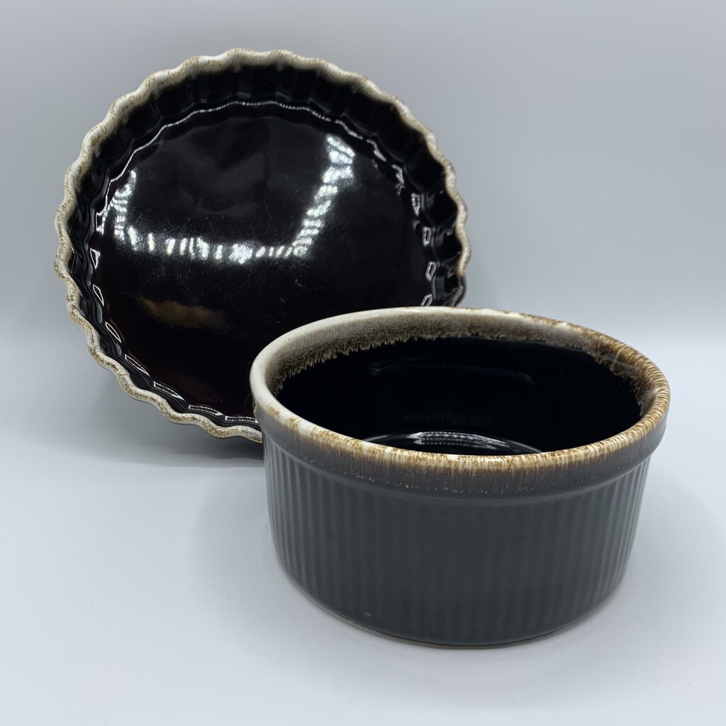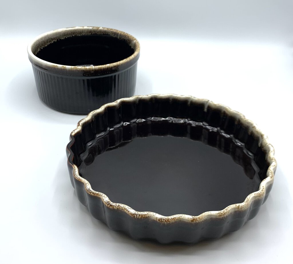 Vintage Pfaltzgraff Gourmet Brown Quiche Dish #233 and Souffle Dish #406 Set /hg