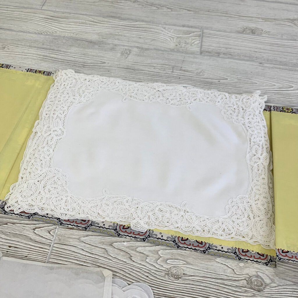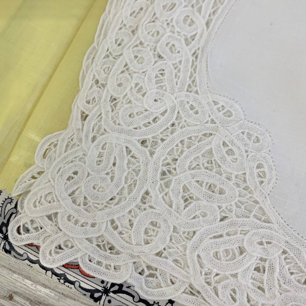 Beautiful sets of vintage table linens. This listing comes with a cloth case for napkins with two sets included: -Set of four embroidered daisy napkins -Set of eight monogrammed Battenberg lace napkins It also comes with a cloth case for placemats and has two sets included: -Set of four embroidered daisy placemats (matches the napkin set) -Set of eight Battenberg lace placemats (matches the lace napkins, but the placemats aren’t monogrammed) The linens were estate-owned and are in good vintage condition. The napkins have some spots on them, but are in otherwise nice condition. The placemats are in excellent shape with no spots noticed. The cloth cases are in nice shape and really help to keep the linens neat and free of dust and debris. Napkins measure: Daisies: 17 inches square Battenberg Lace: 17 inches x 18 inches. Placemats measure: Daisies: 18.5 inches x 12.5 inches Battenberg Lace: 18 inches x 12 inches.