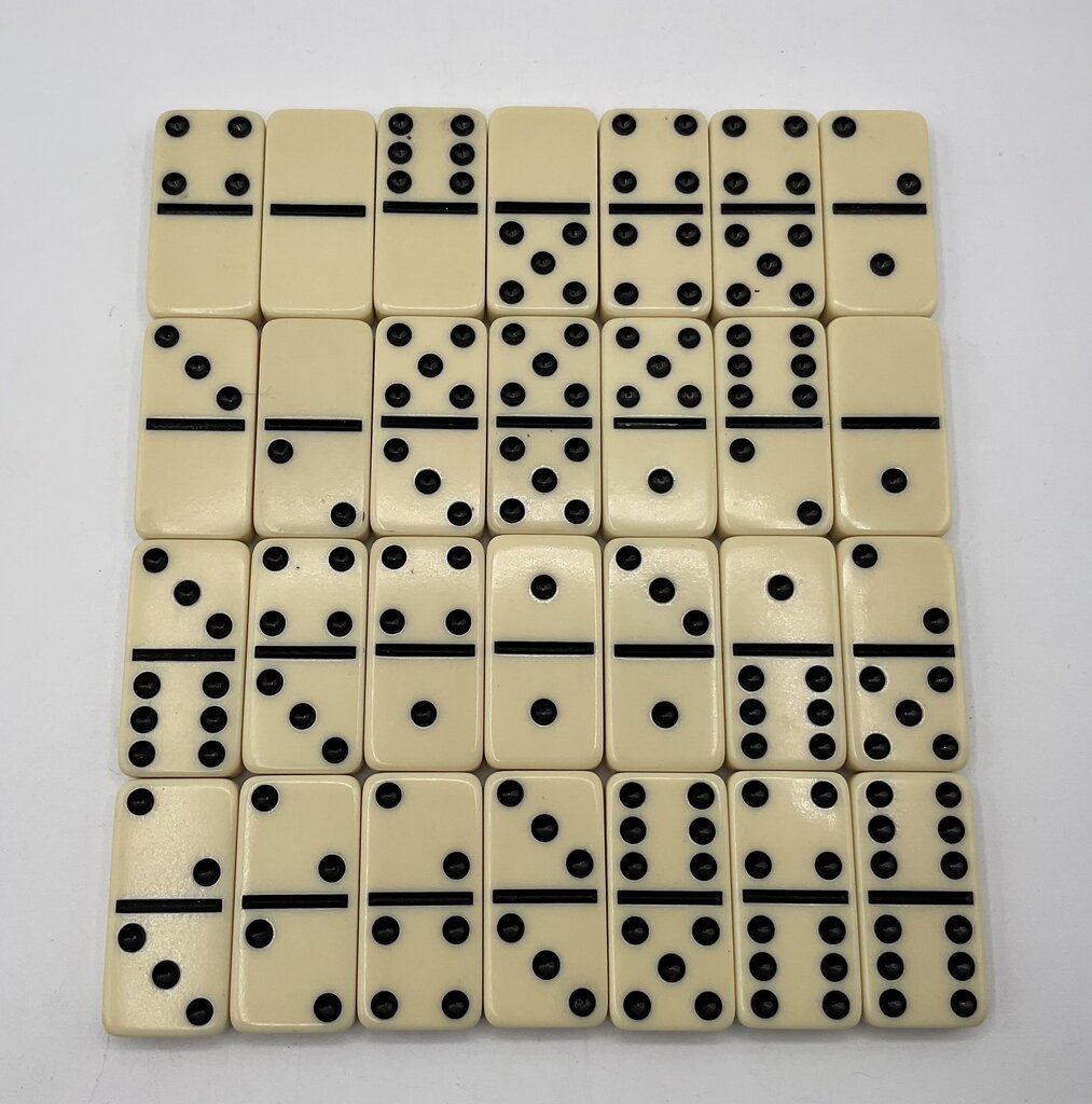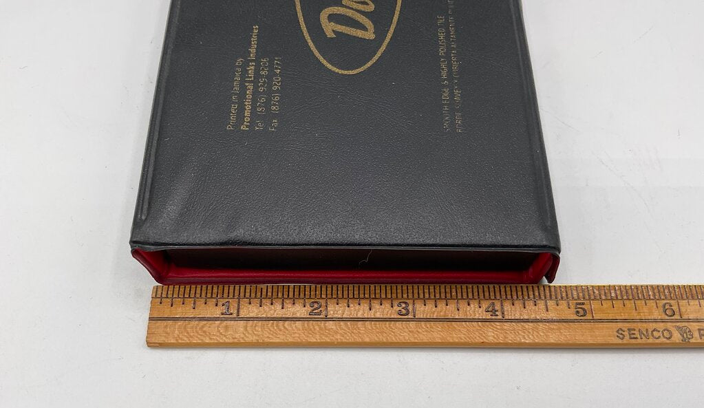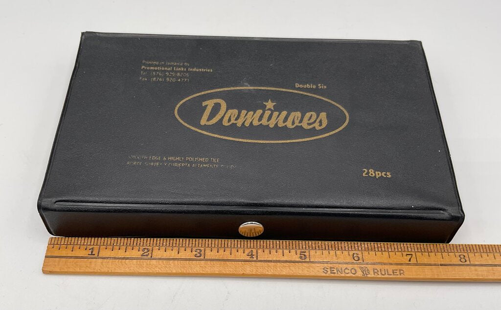 This vintage domino set was produced in Jamaica by Promotional Links Industries. The backs of these dominoes display the Jamaican flag. This set includes 28 pieces of double six dominoes and includes a storage case with a button to snap the case shut. This set is in fantastic vintage condition, both the case and all pieces are in great shape, no damages present. Please carefully review all photos for overall condition. Case measures 7 5/8” by 4 3/8” by 1” and the set weighs 1 pound 5 ounces. Estate item. Condition is pre owned. Ships USPS Ground Advantage Mail.