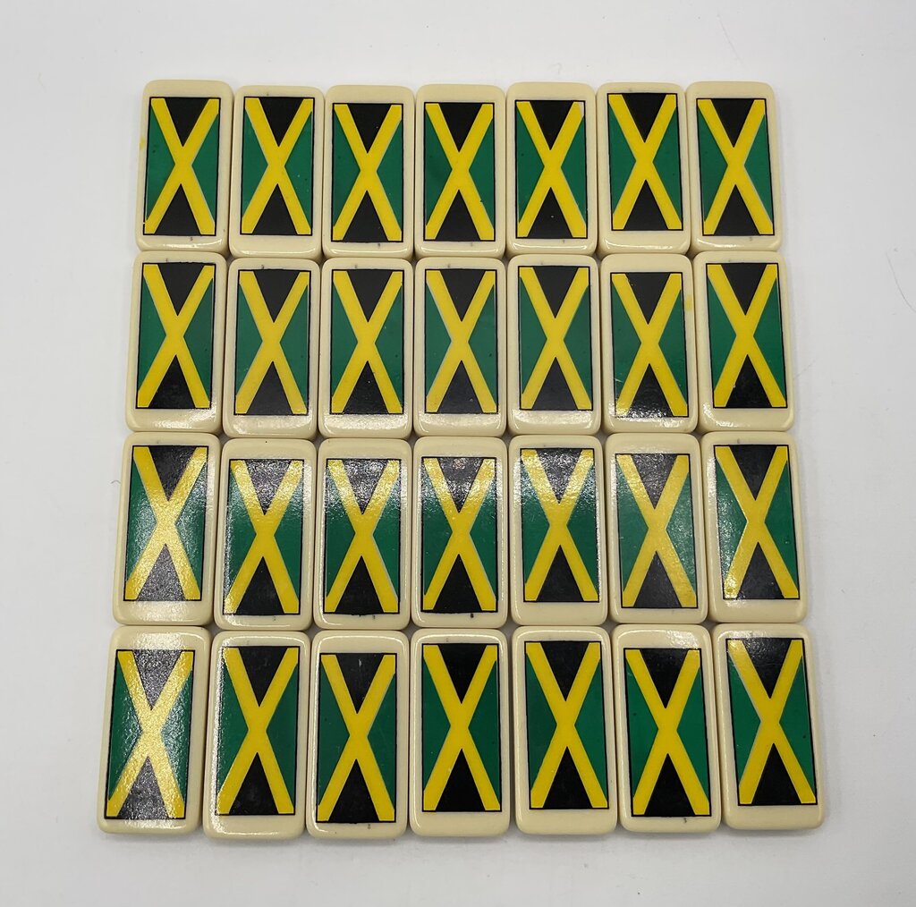 Vintage Promotional Links Industries 28pc Domino Set - Jamaican Flag Back - Printed in Jamaica - Double Six - Case Included /s