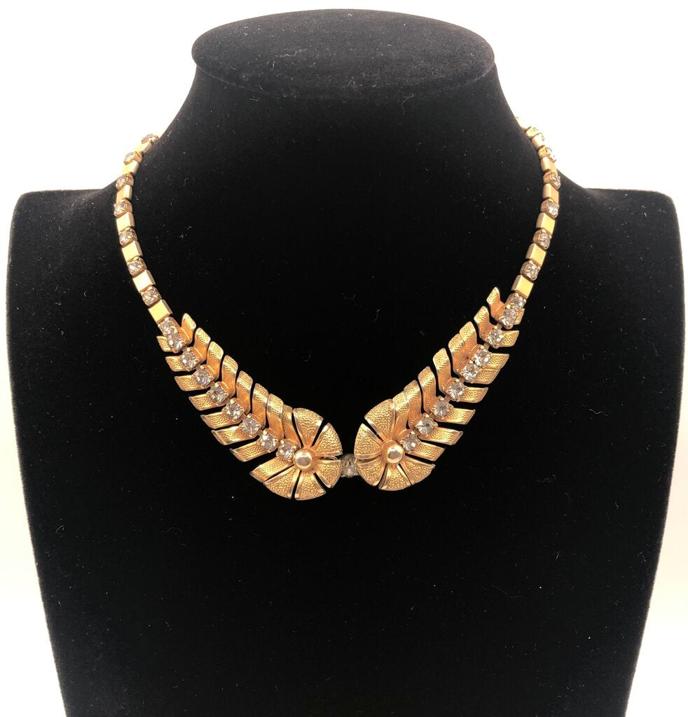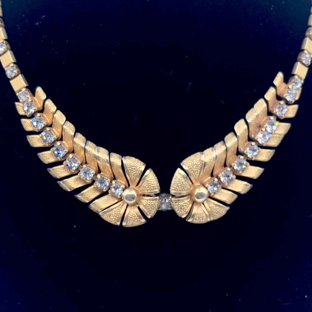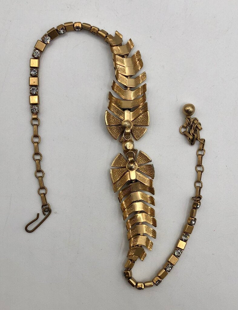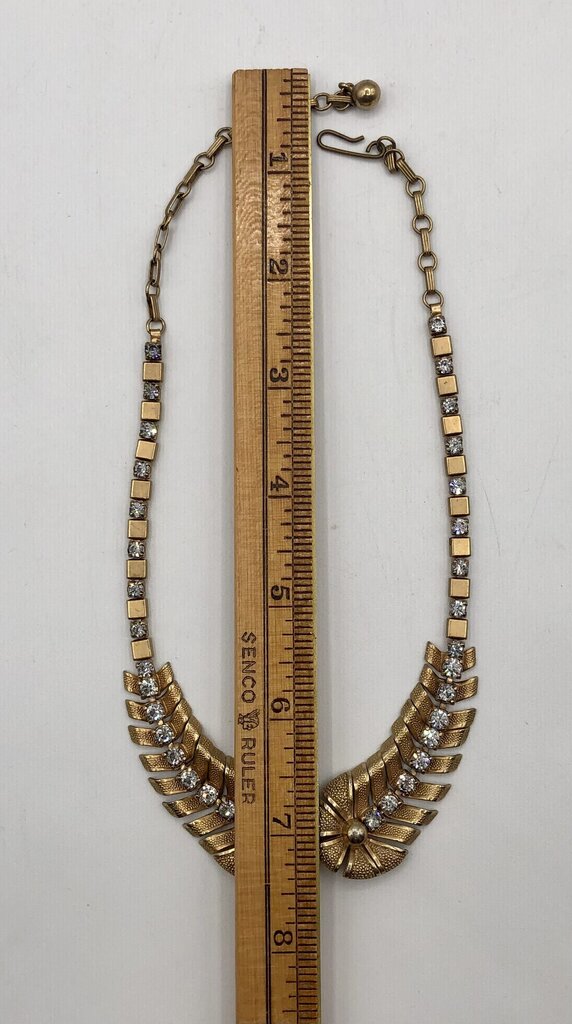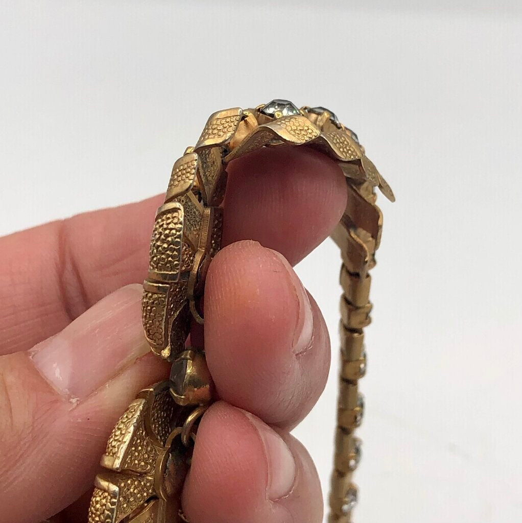 Vintage Reticulated Rhinestone Gold Tone Collar Necklace /b