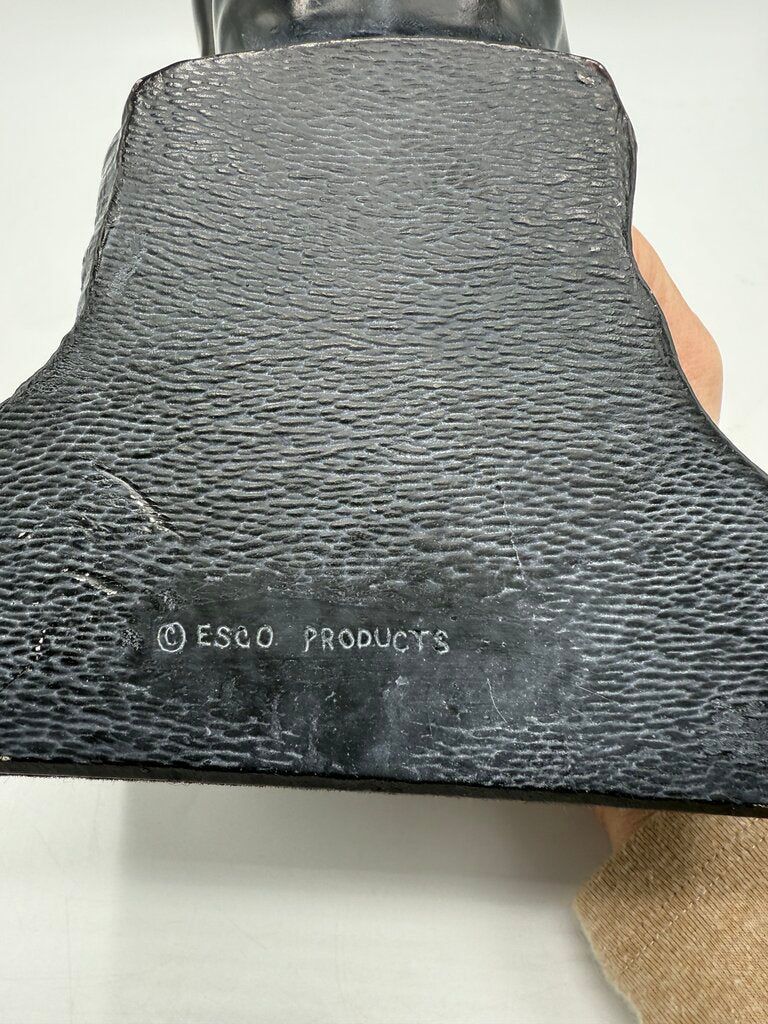 Vintage Esco Products black Chalkware statue of Rodin’s “The Thinker” statue. Classic statue measures 9.5” tall with a 5.5”x 3” base. Weight is 2 lbs. 13 ounces. Flat back base looks like a bookend. A few light marks from use and age. No cracks.