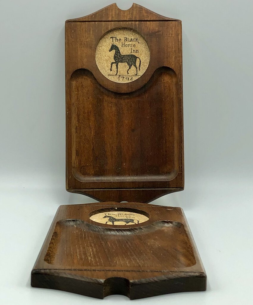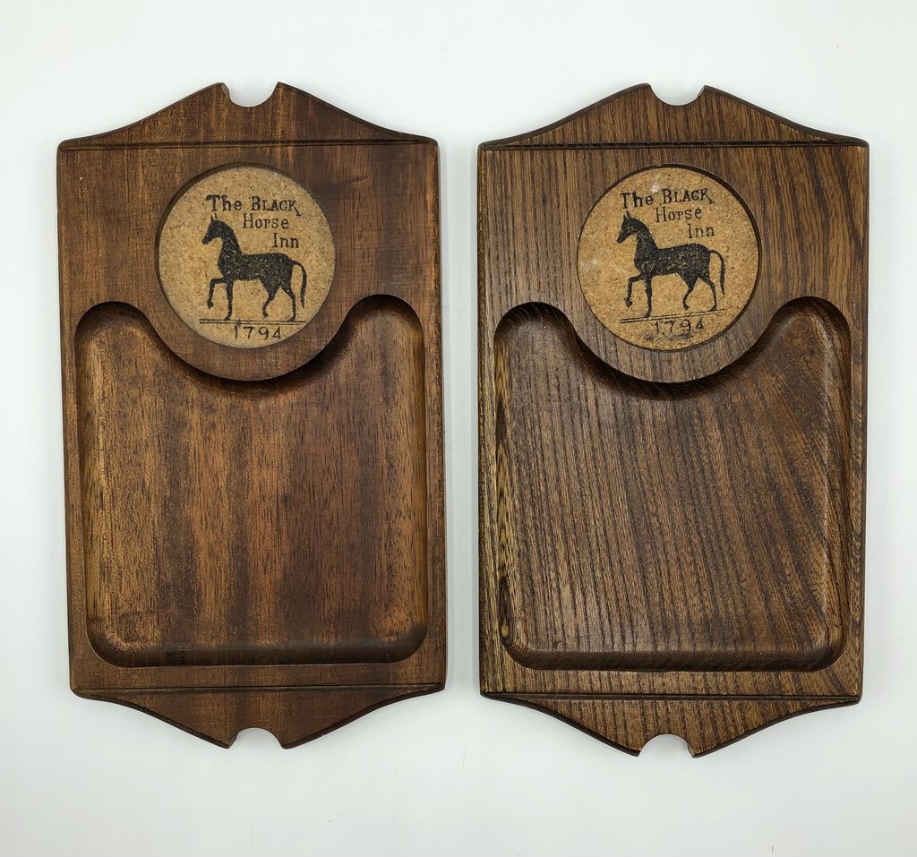 Vintage SERE Wood Black Horse Inn Coaster & Snack Tray /b
