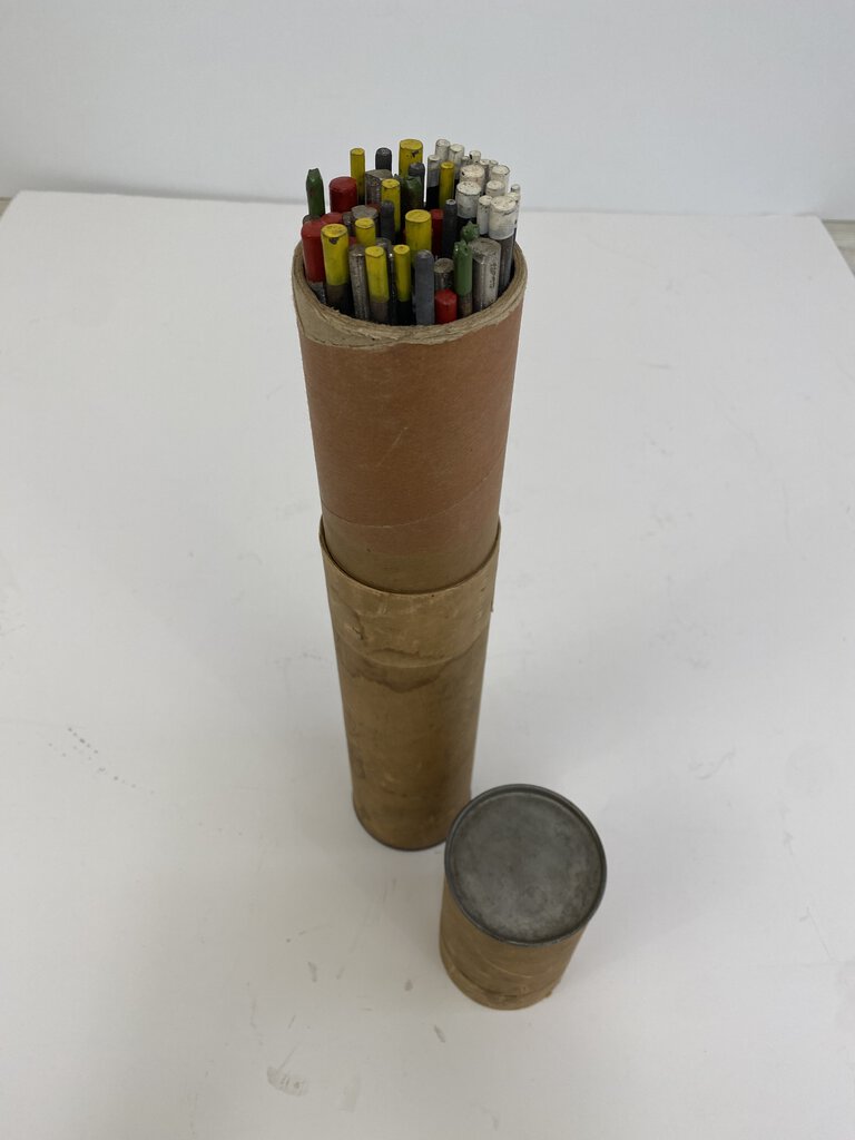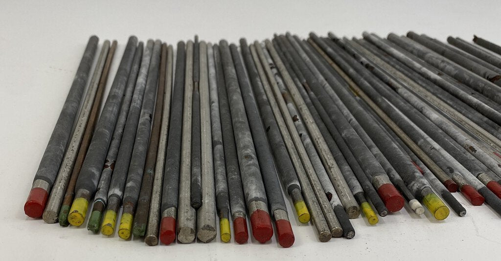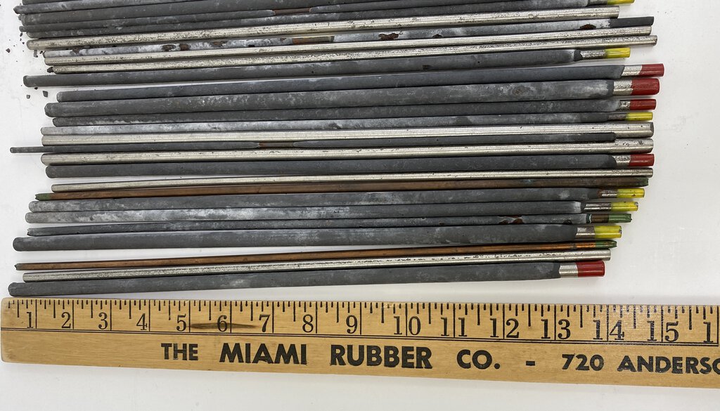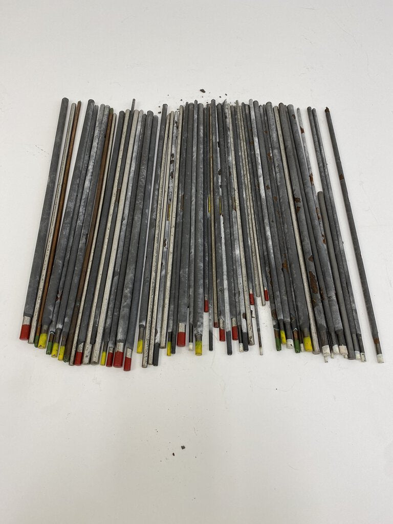 Estate lot of Welding Rods in a variety of colored ends in original cardboard storage tube. Weight is almost 9 lbs..