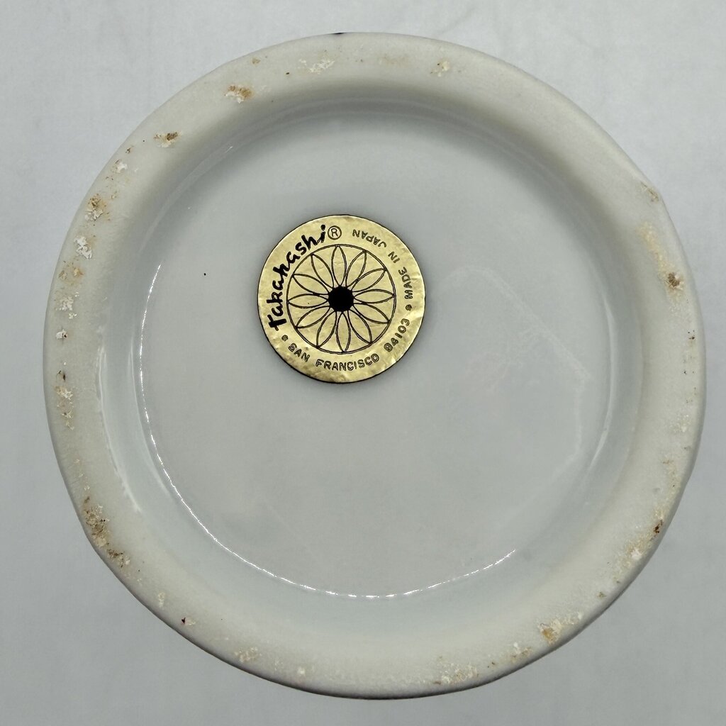 Vintage Takahashi San Francisco blue and white peacock feathers, art deco style bud vase. This lovely vase was made in Japan, is 6 1/2” tall with a 2 1/8” diameter and is in very good vintage condition. No chips, cracks, crazing or repairs, Ideal for a single stem flower, a delicate arrangement or as a standalone decorative object. Please carefully review all photos for condition details. Estate item. Condition is pre owned.