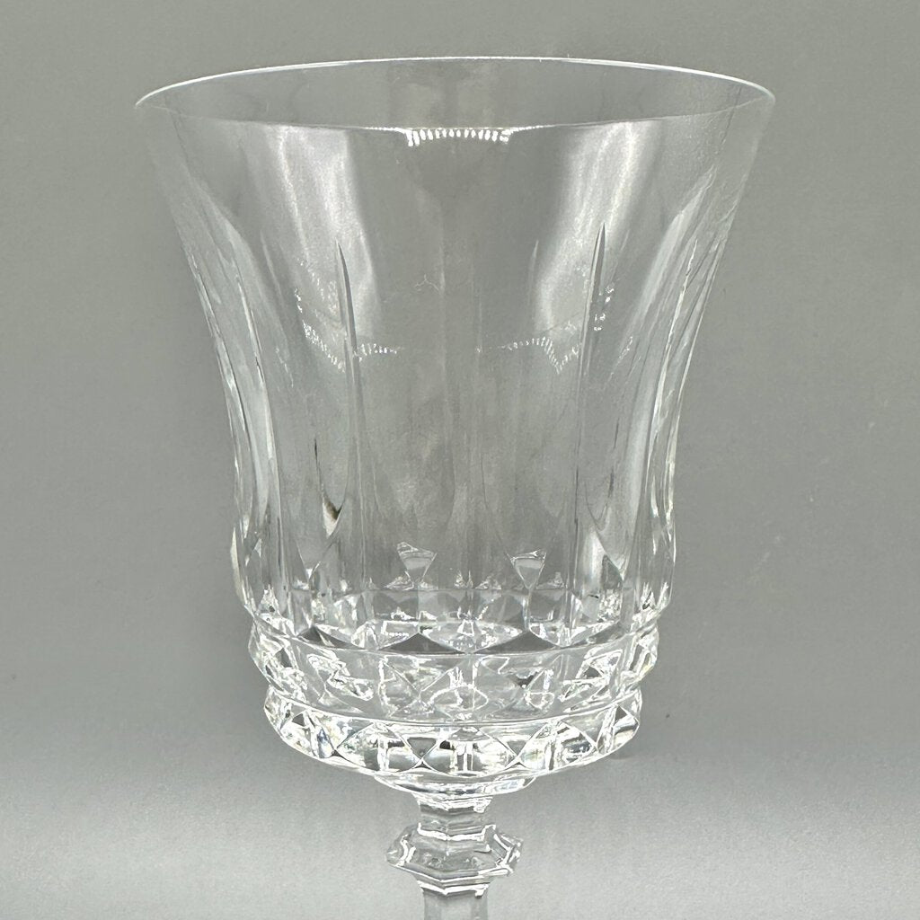 Add a touch of vintage elegance to your drinkware collection with this stunning Val St Lambert GLENDALE crystal water goblet. Crafted in Belgium between 1968 and 1989, this goblet was exquisitely designed and features vertical and diamond cut fluted bowls on beautiful multi sided stems. it is acid signed on the bottom. 6 3/4in tall, with a 3 1/4in diameter. In very good vintage condition, no chips, flea bites, or cloudiness. Shows light age and use appropriate wear. Please carefully review the photos and feel free to ask questions.