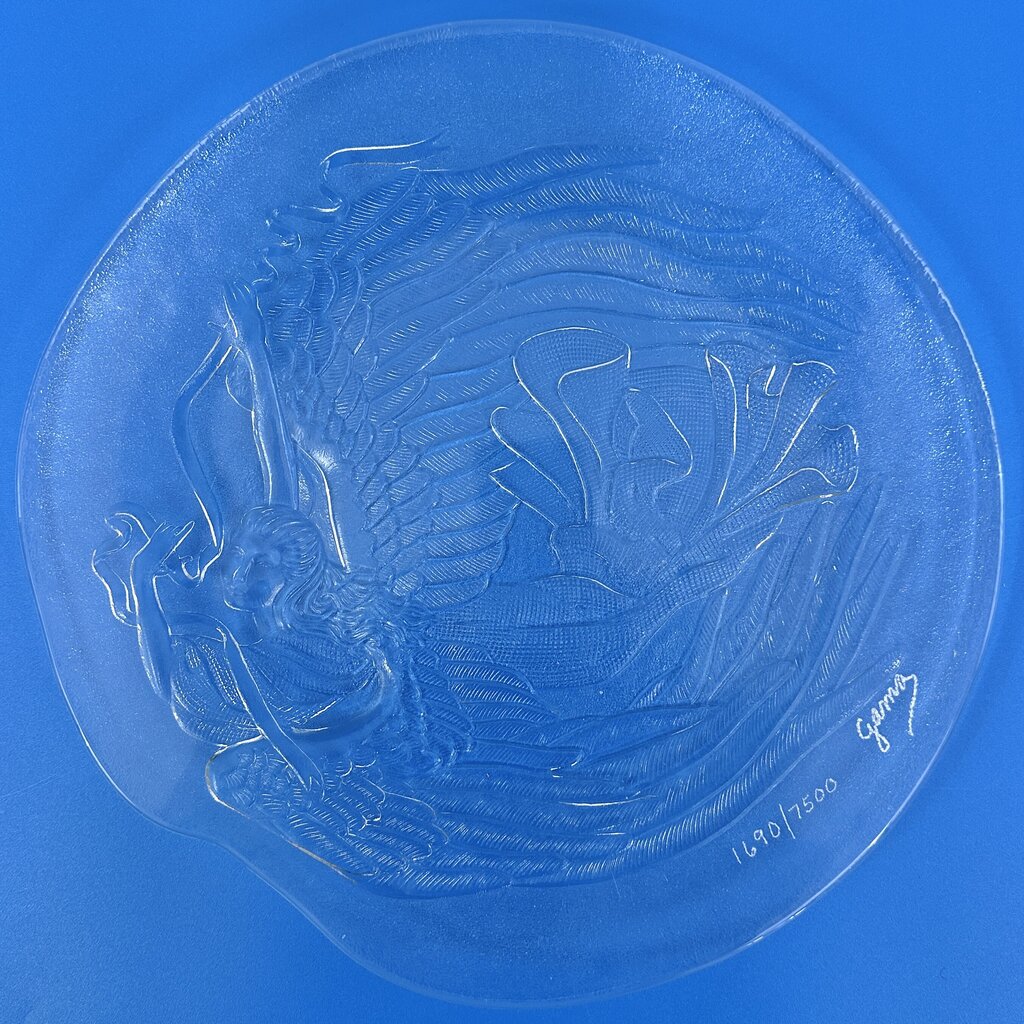 Vintage Verde Pinho Crystal “Angel With Ribbon” Limited Edition Textured Crystal Plate Signed & Numbered Made in Portugal /cb