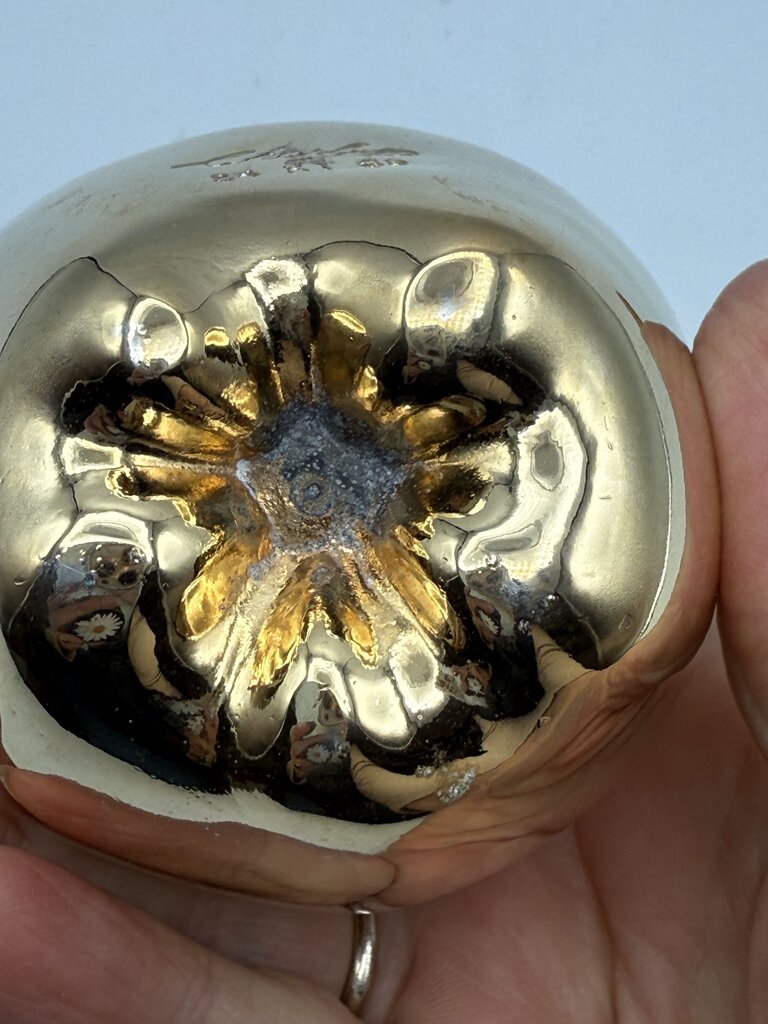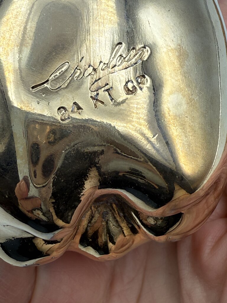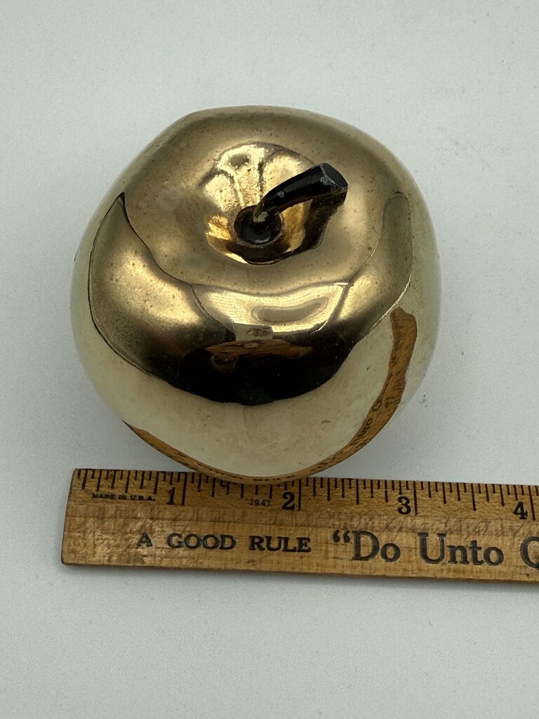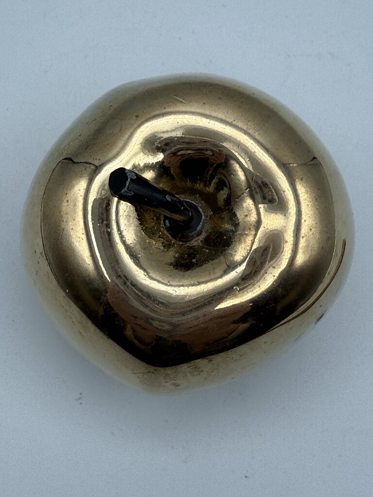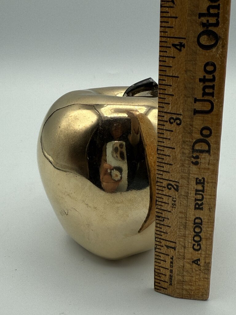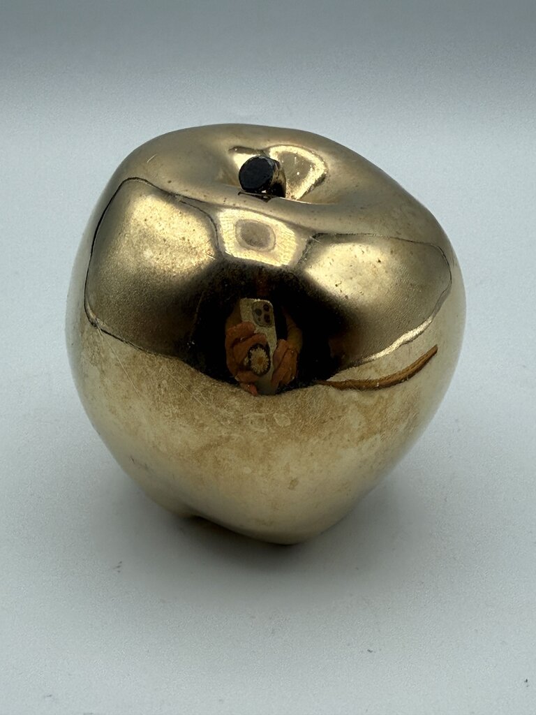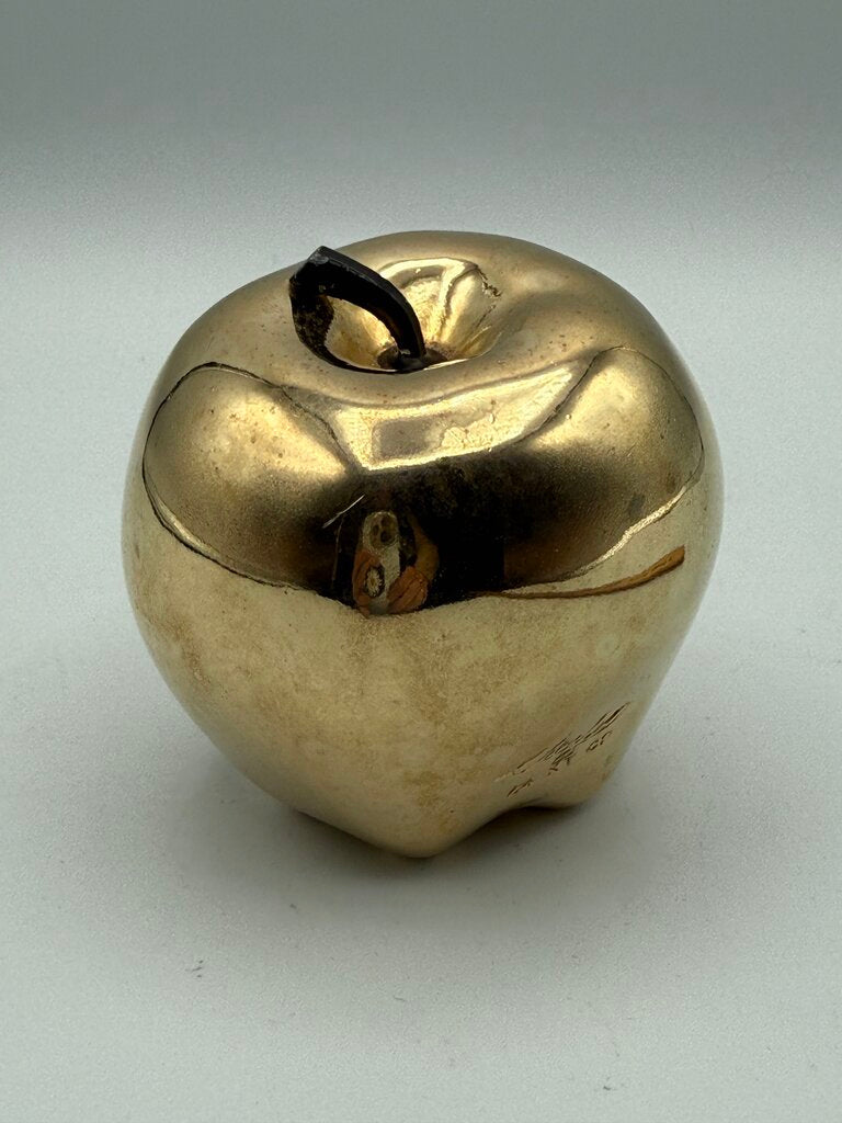 Vintage signed Apple paperweight hallmarked “Charley” 24 KT GP (gold plate). Apple stands approximately 3” tall and 3” in diameter. Weight is 1 lb. 3 ounces. Unique estate piece, some scratches in metal.