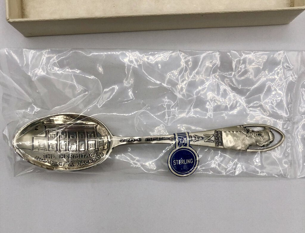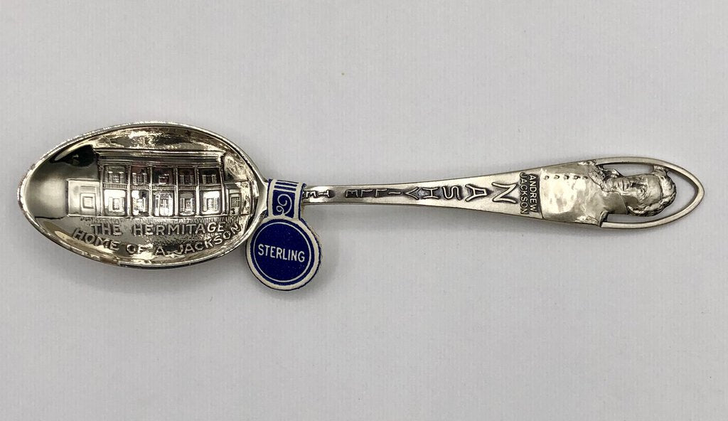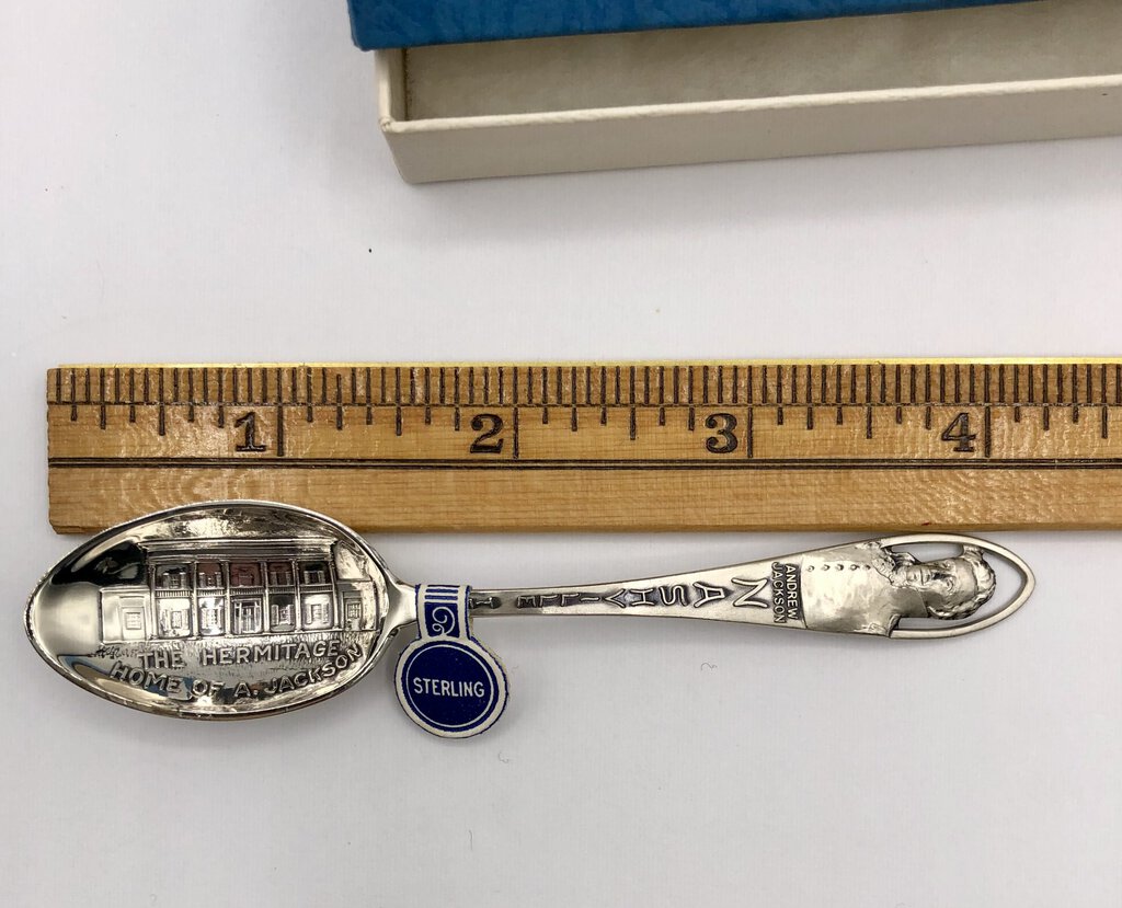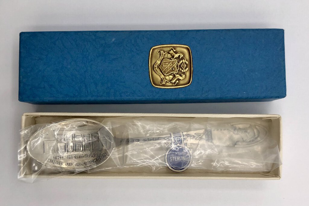 Very nice souvenir spoon, kept pristine in it’s box, never displayed. Depicts The Hermitage Home of Andrew Jackson, along with a likeness on the handle.