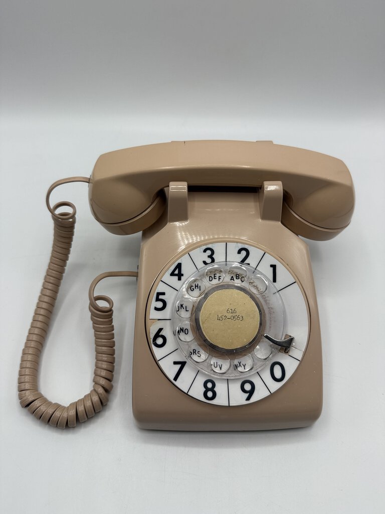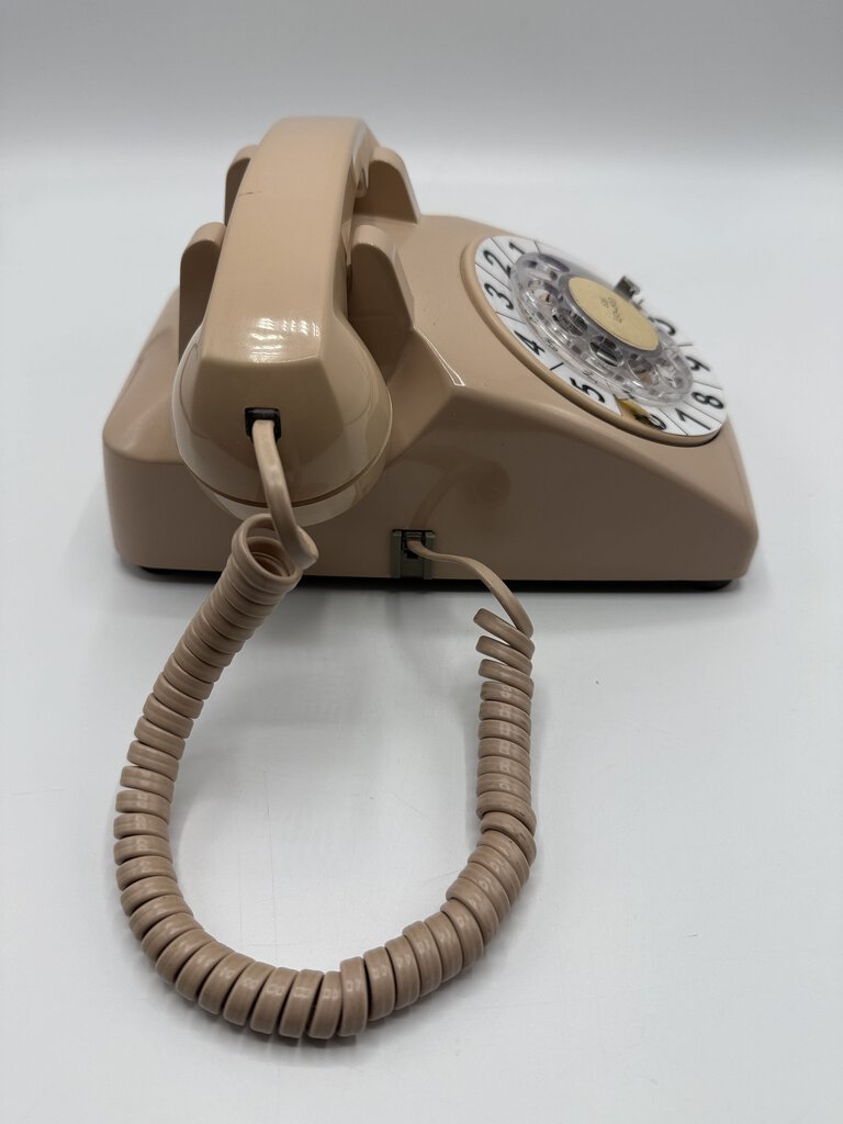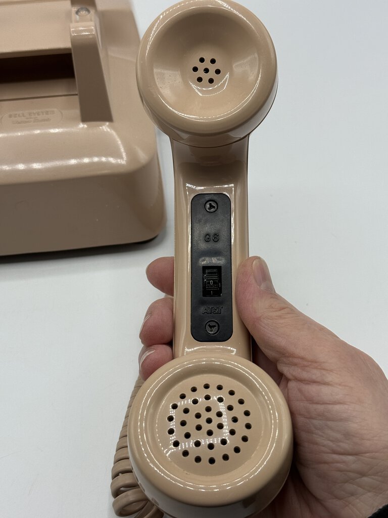 Vintage Bell System Rotary Dial Telephone in beige. Includes the rare handset that has a volume dial built in to it. Untested.