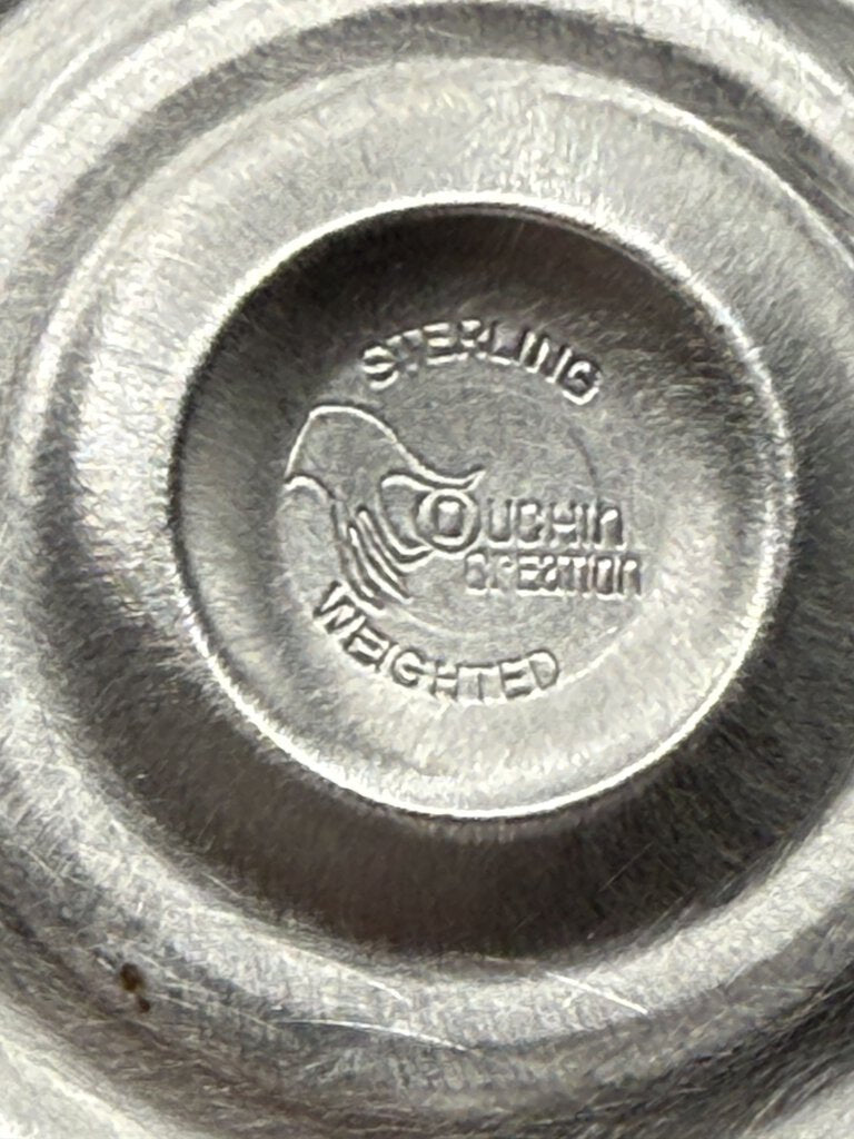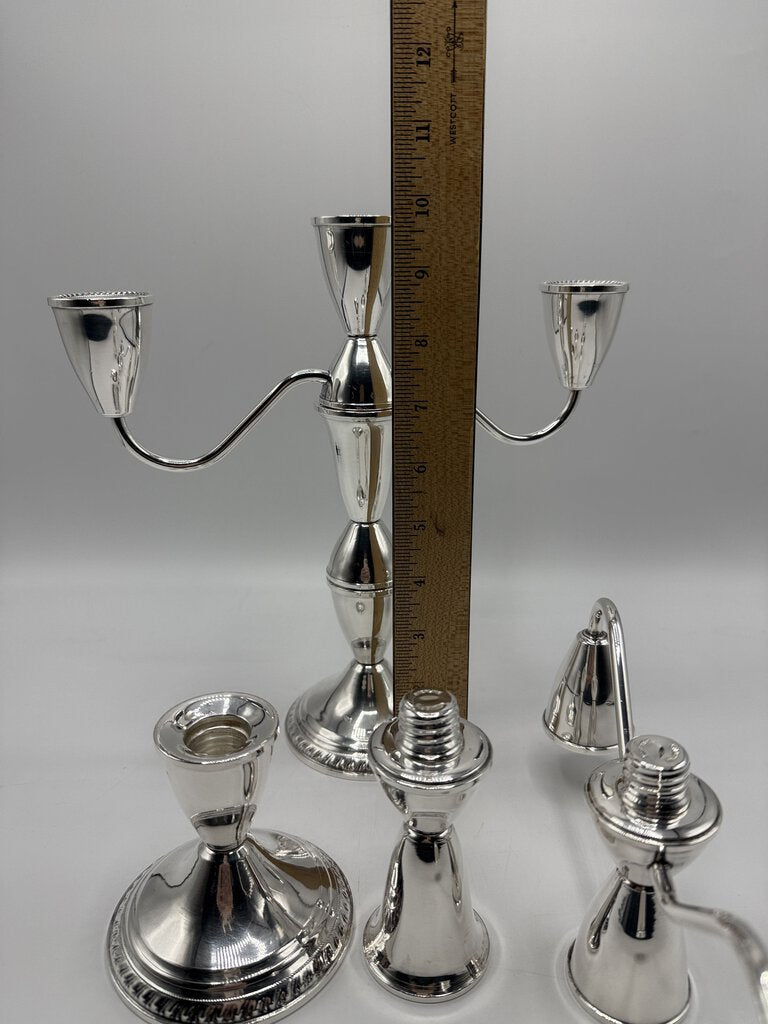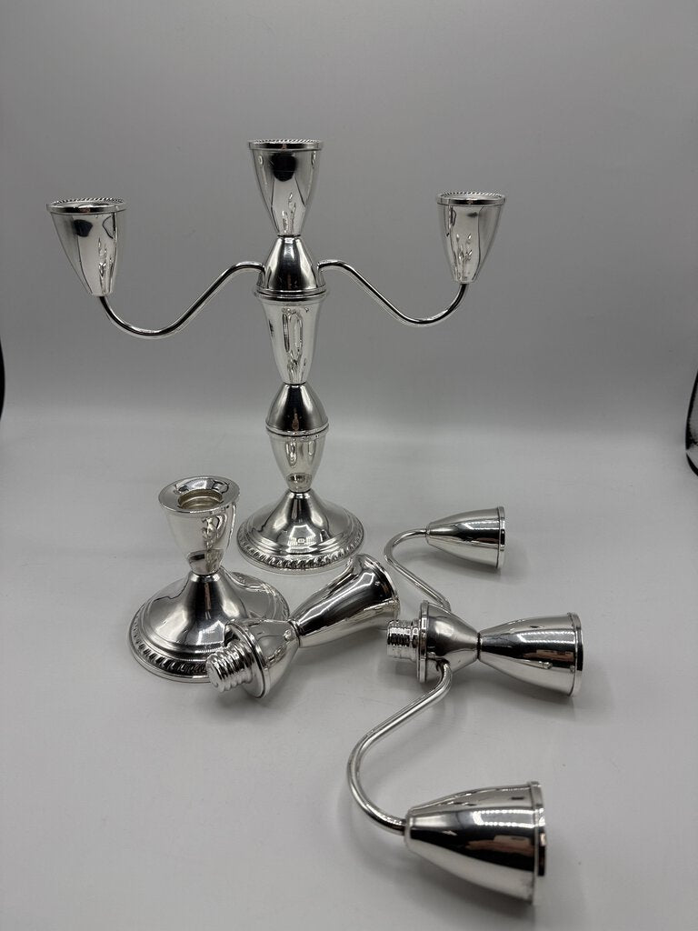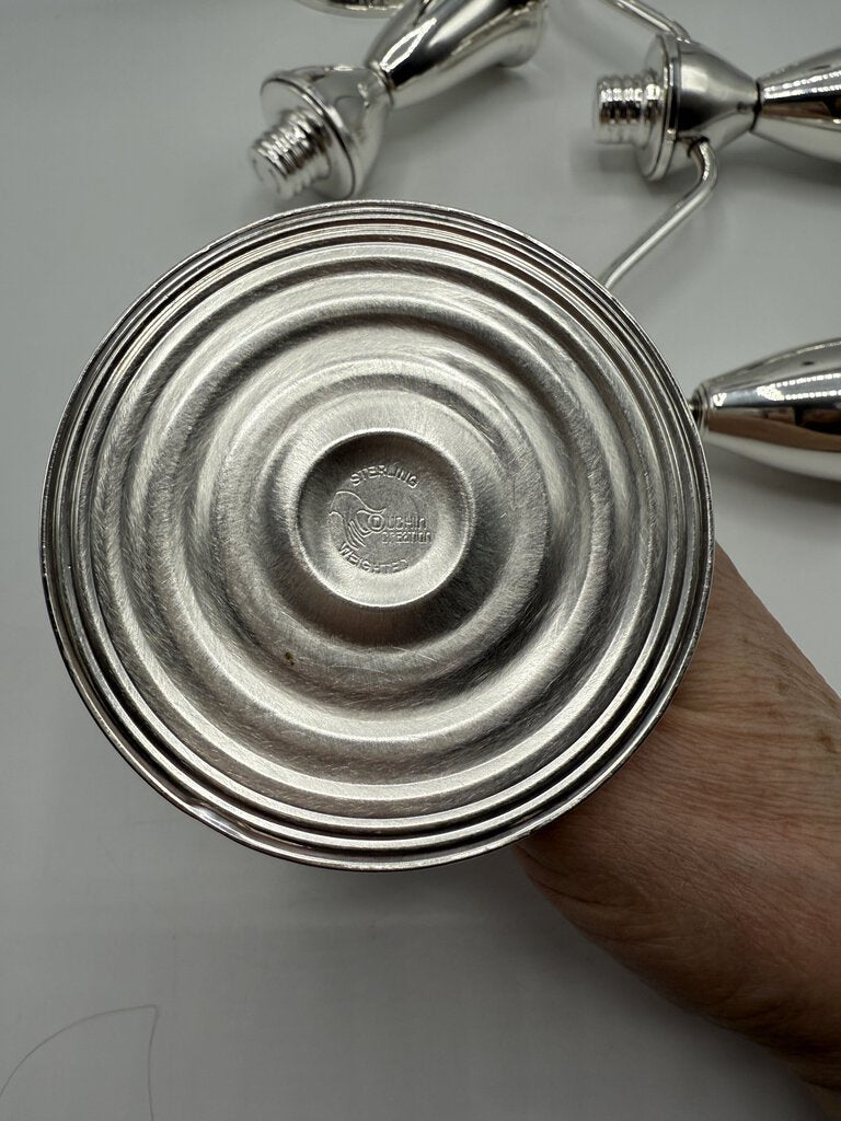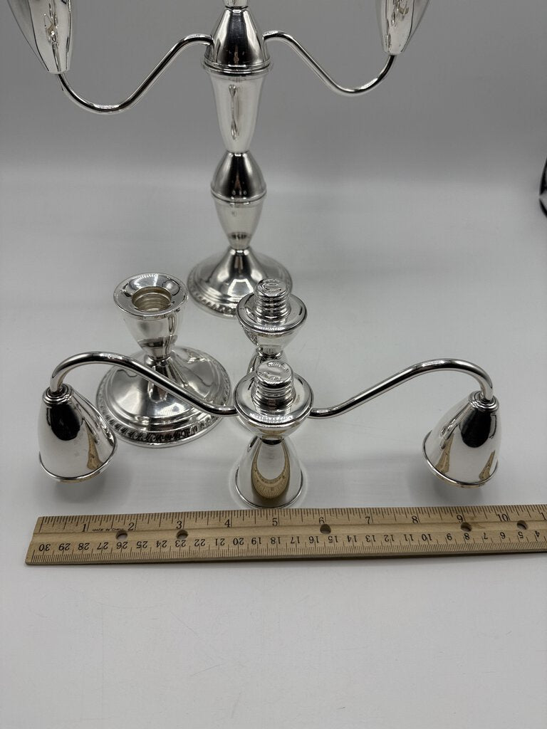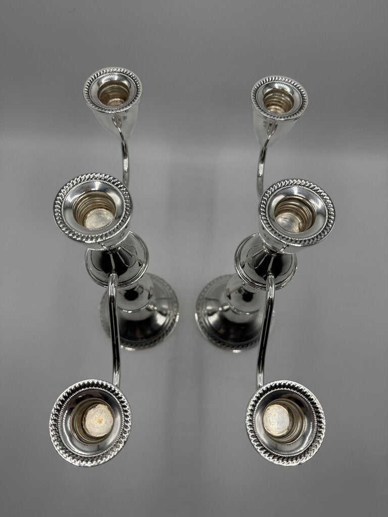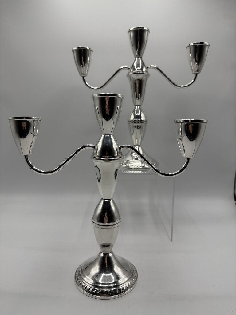 Pair of Duchins Creation Sterling Silver, cement weighted. 3 arm candelabra can be used with a single candle or three.