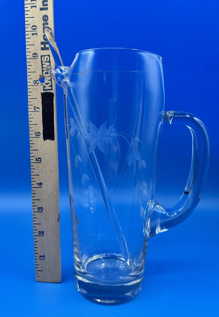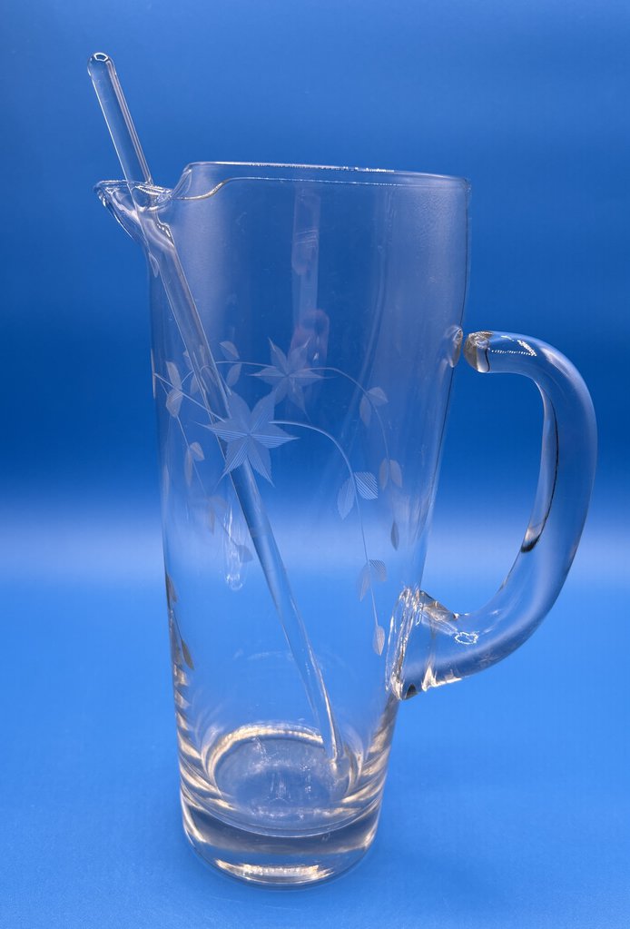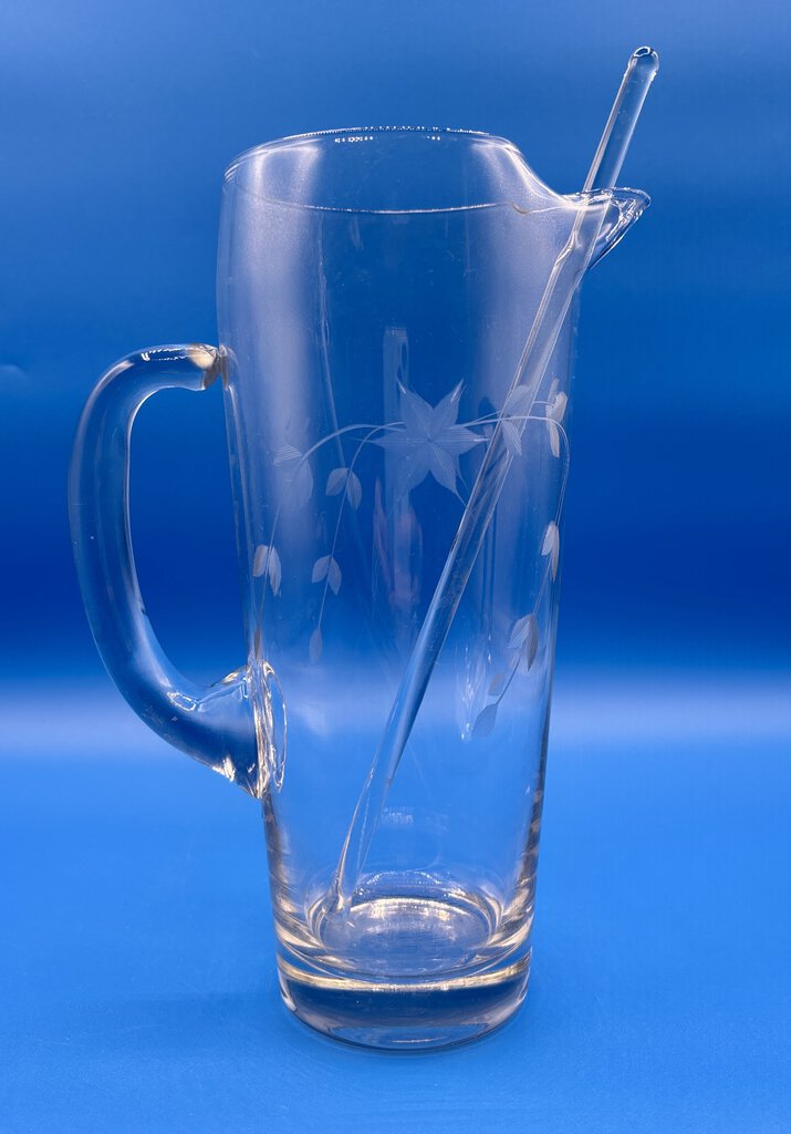 Vtg Etched Cocktail/Martini Pitcher with Stirrer /j