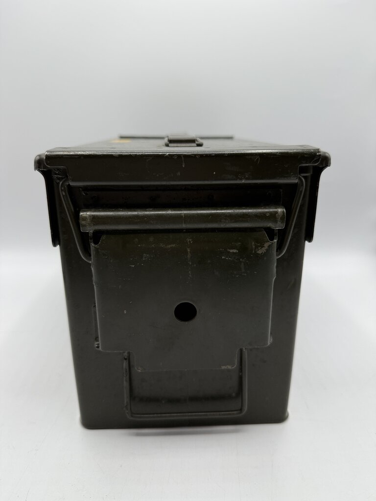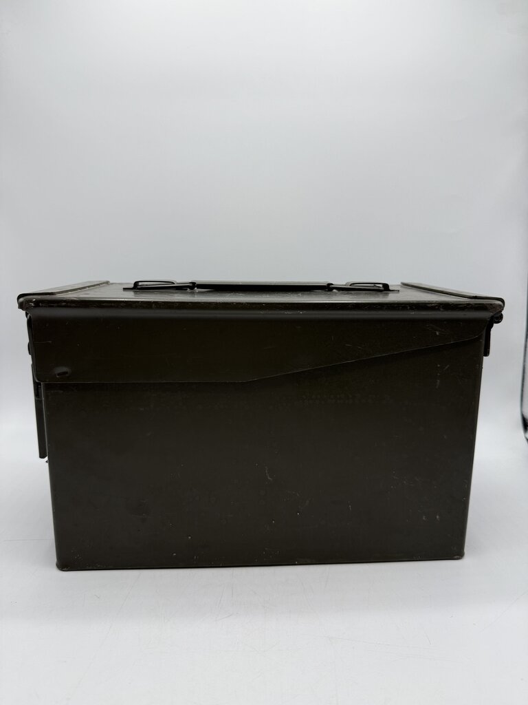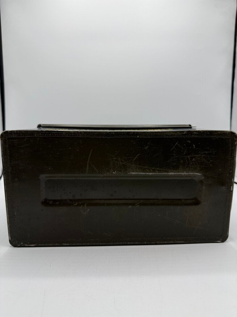 Vintage Military Metal Ammo Box. 100 CAL .45 Cartridges- Match Wadcutter Cartons - Lot WCC-40-6003. Good Condition. Measures approximately 12” by 7.5” by 5.5”.
