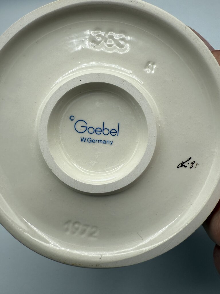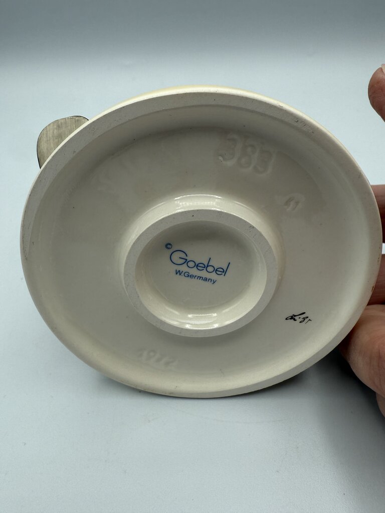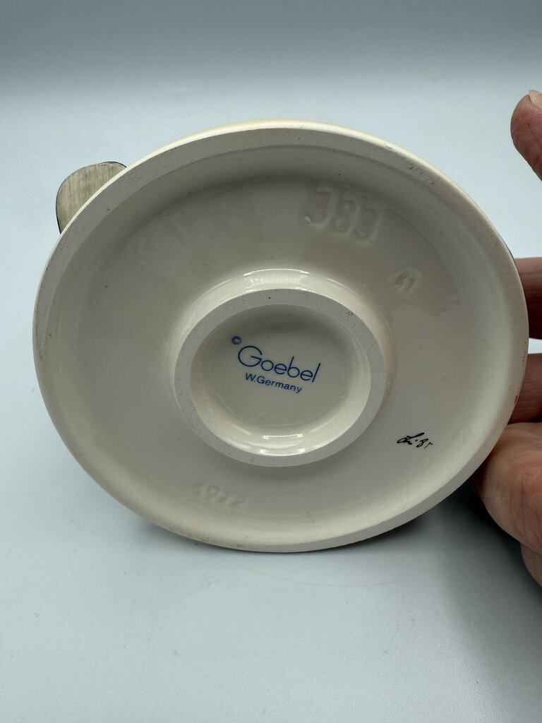 Vintage M.J. Hummel Goebel figurine “Going Home” made in West Germany. Charming little boy and girl carrying their knapsacks hiking their way home. Measures 5” tall with a 3” in diameter round base. Signed on bottom and base top. No chips, cracks or dust. With storage box.