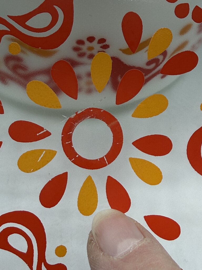 Highly collectable vintage Pyrex 1 quart covered casserole dish in the Friendship pattern. Model 473. Clean, no chips or cracks found, light paint wear on lid. Paint on dish is strong. No Dishwasher damage, finish is shiny. Dish measures 6” in diameter and 3.25” deep.
