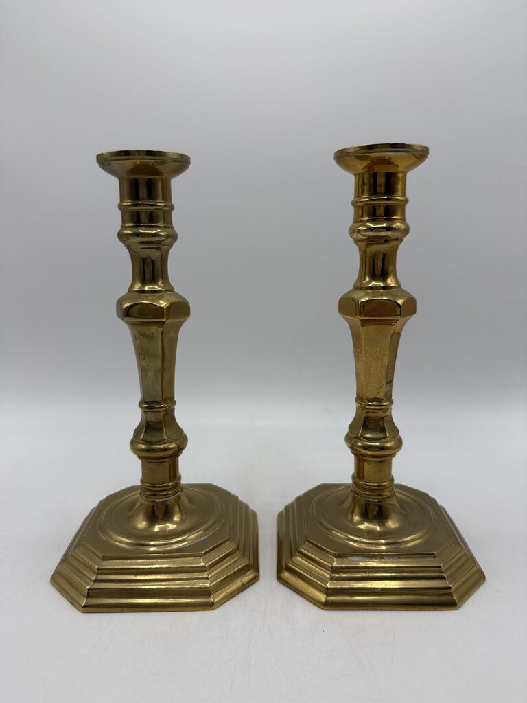 VTG Set of Brass Candlestick Holders 8.5” tall Octagon Base /rw