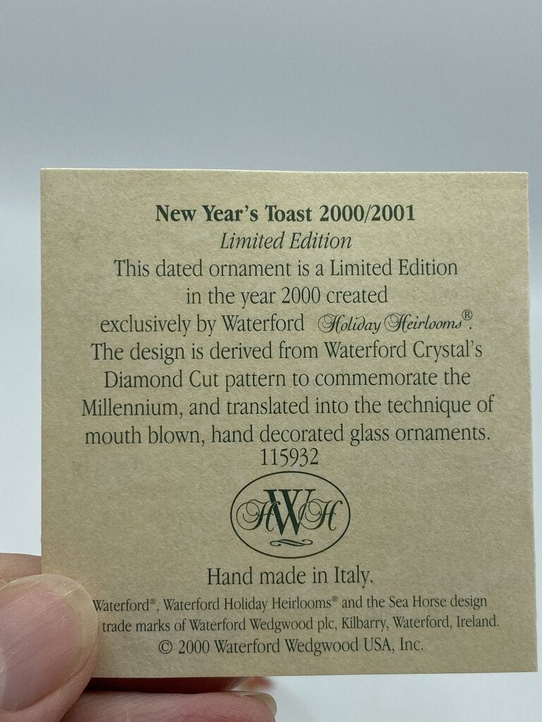 Waterford New Years Toast 2000-2001 Ornament in Box /ro