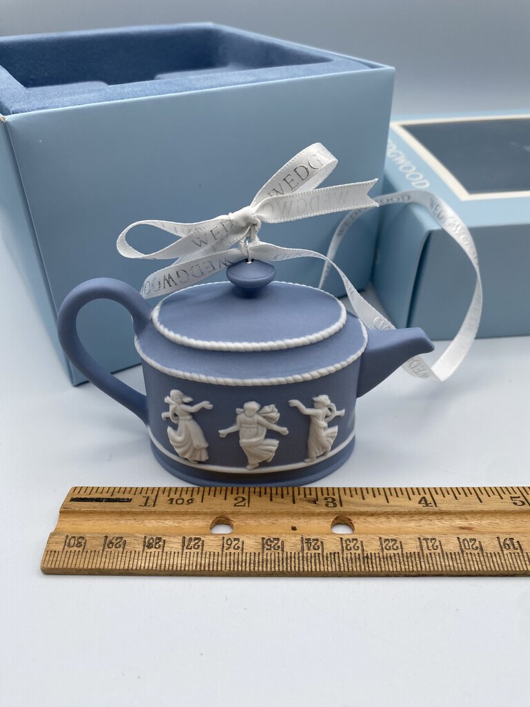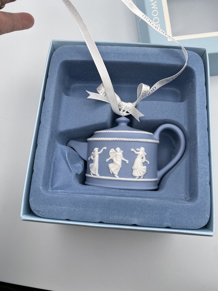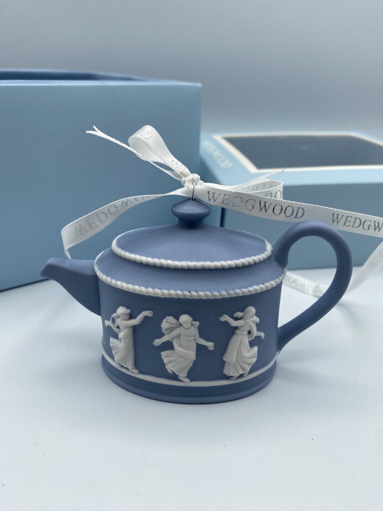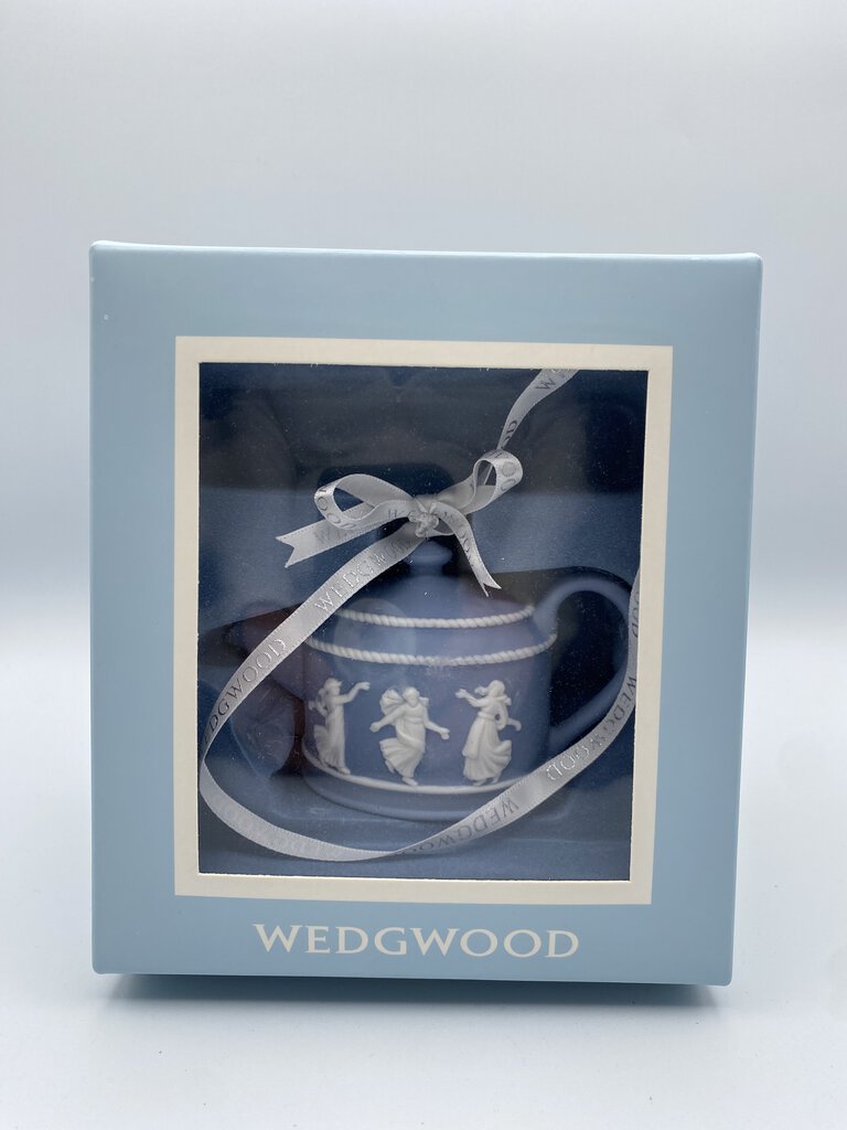 - Wedgwood Blue Jasperware Teapot Ornament in Original storage box.