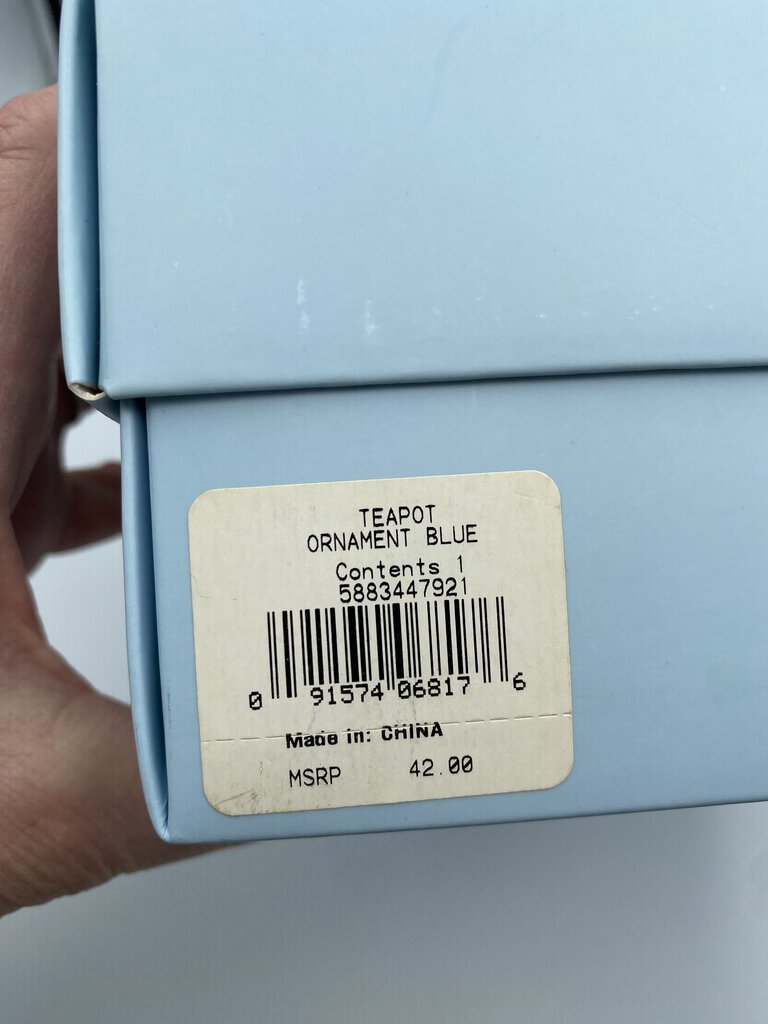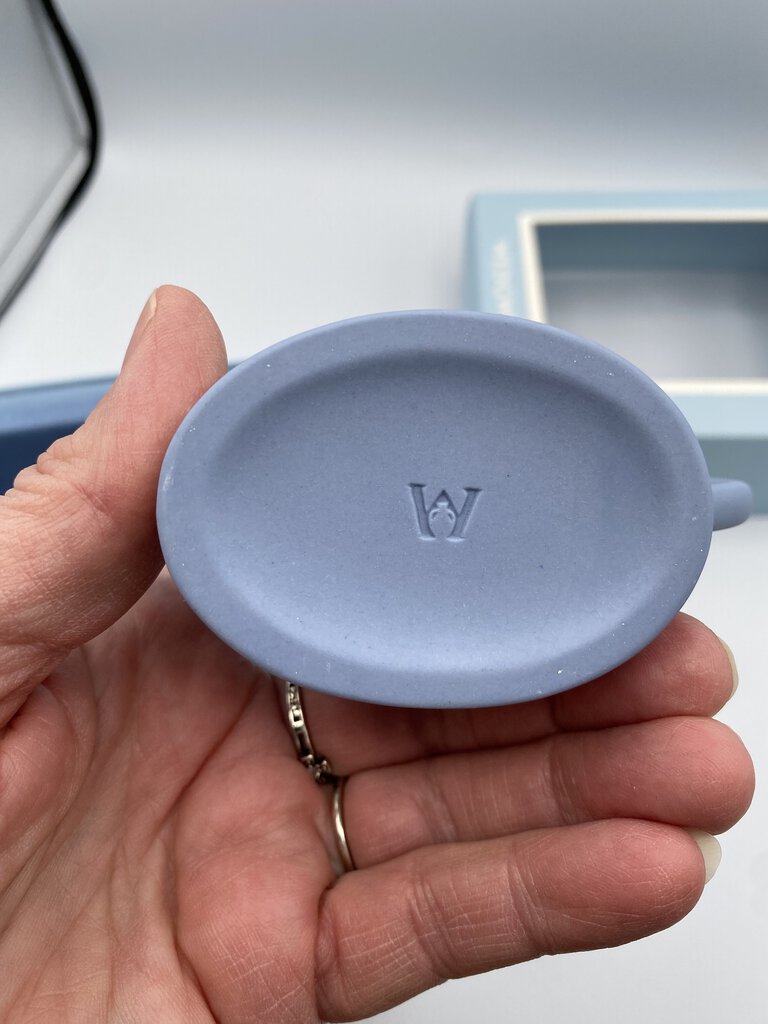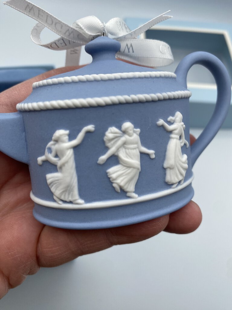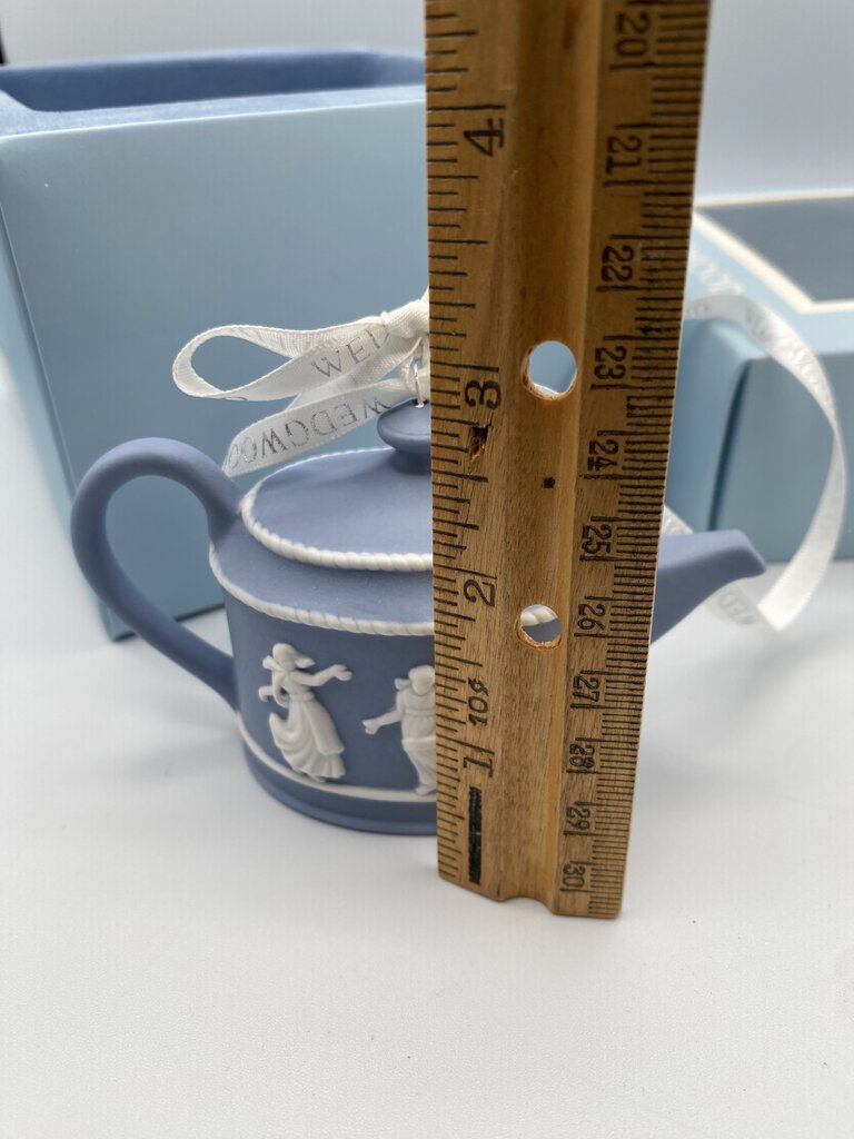 - Wedgwood Blue Jasperware Teapot Ornament in Original storage box.
