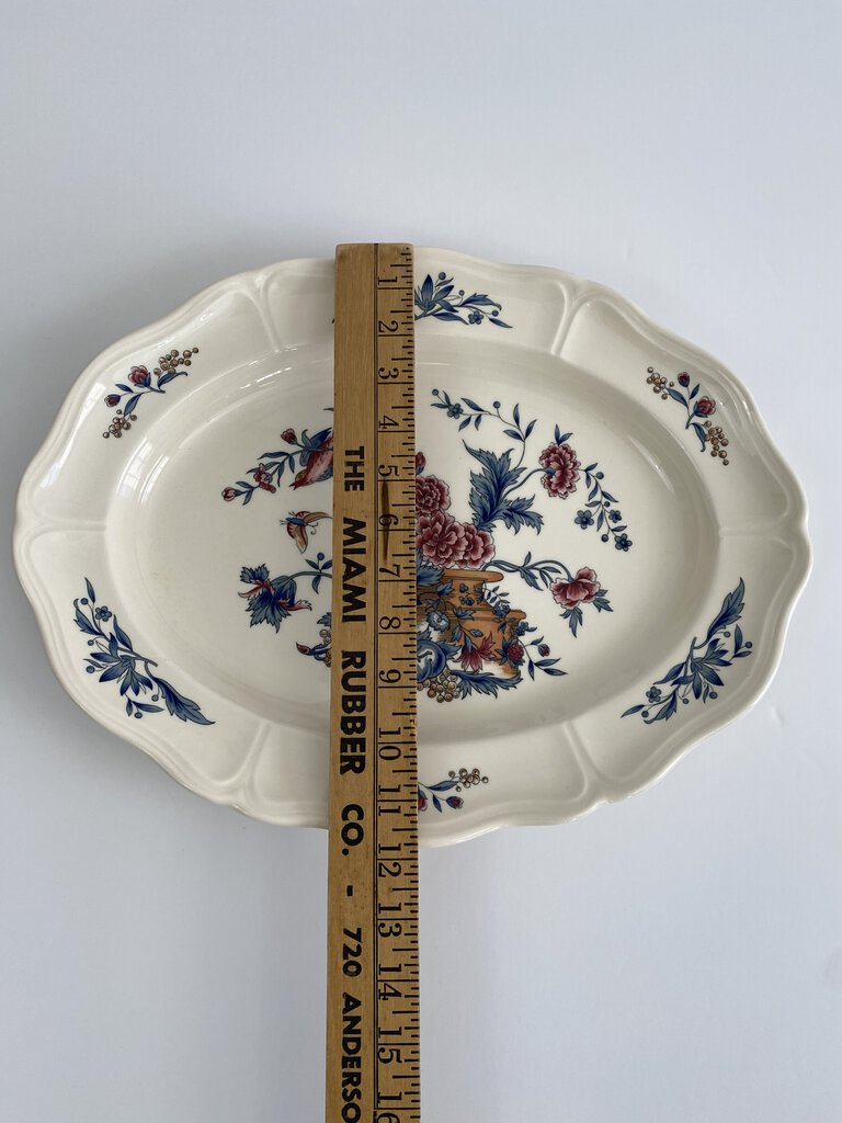 Wedgwood China made in England in the Williamsburg Potpourri NK 510 pattern. Large oval platter measures 15 3/4” by 12” by 1 3/4” deep. Excellent condition, no chips, cracks, crazing or utensil scratches. Ready to serve your dinner guests in style!