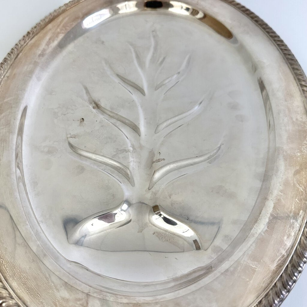 Wm. Rogers Silver Plate #810 Tree of Life Footed Meat Server/Tray 16x12 /cb